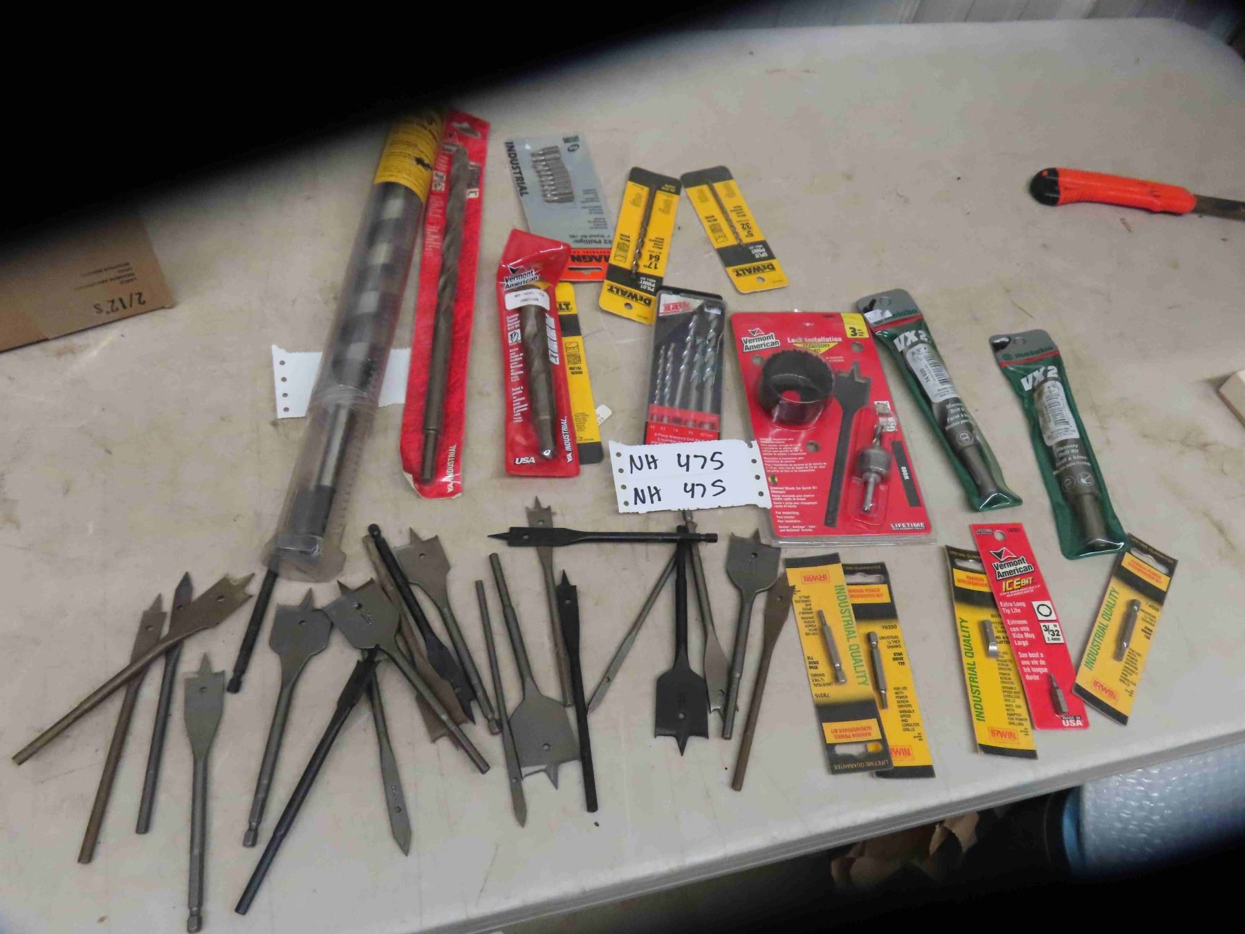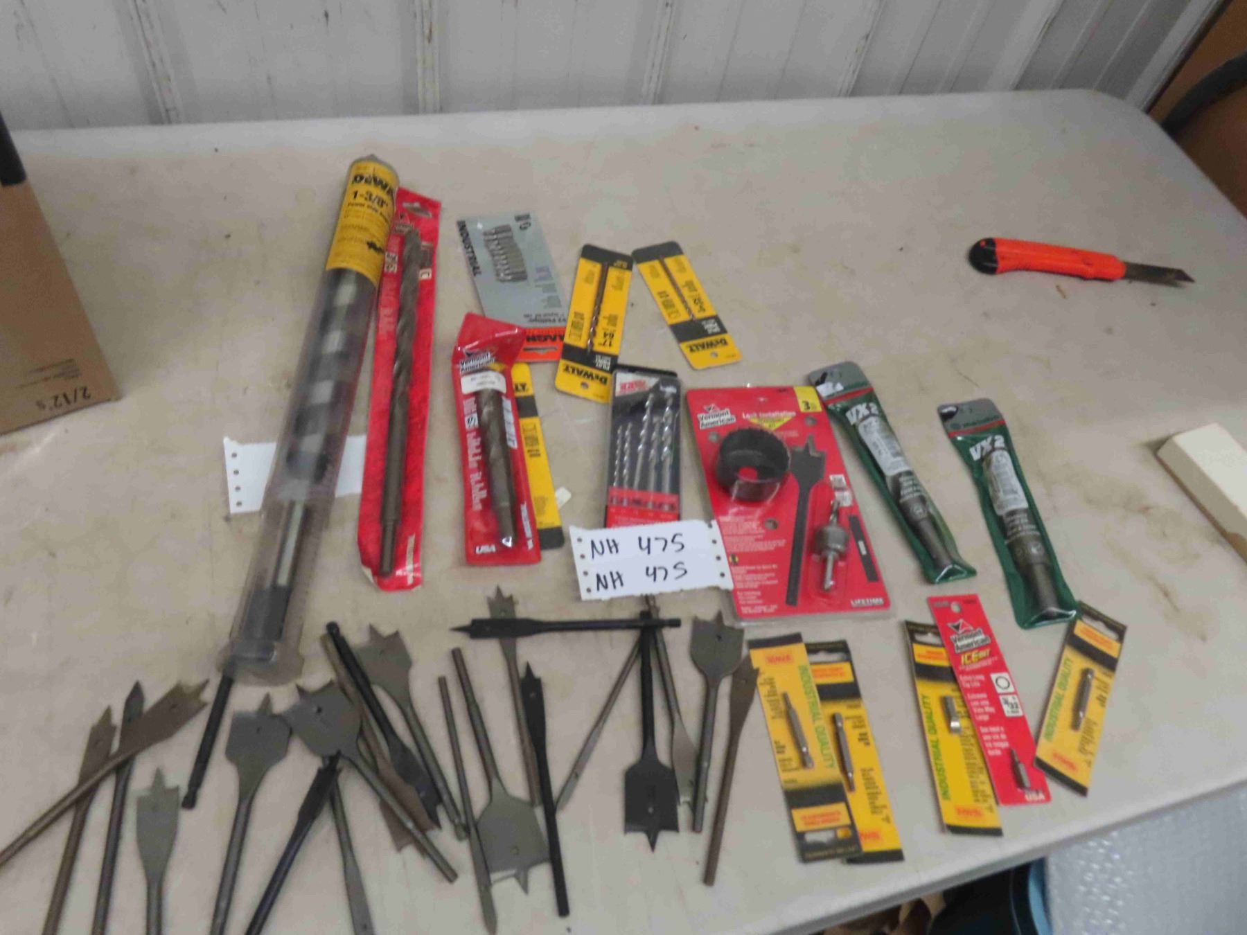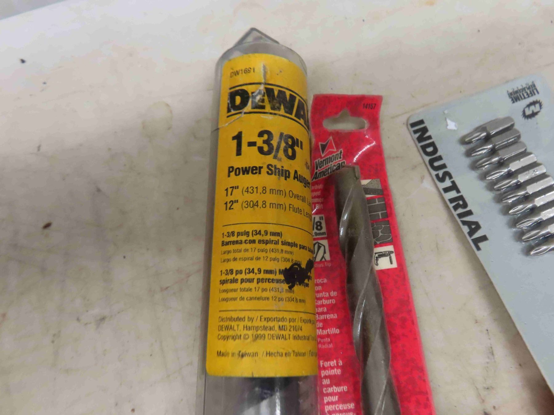 New Drill Bits ; Spade + Wood, DeWalt 1 3/8" Auger, Lock Instal Kit, Carb Tipped, plus more
