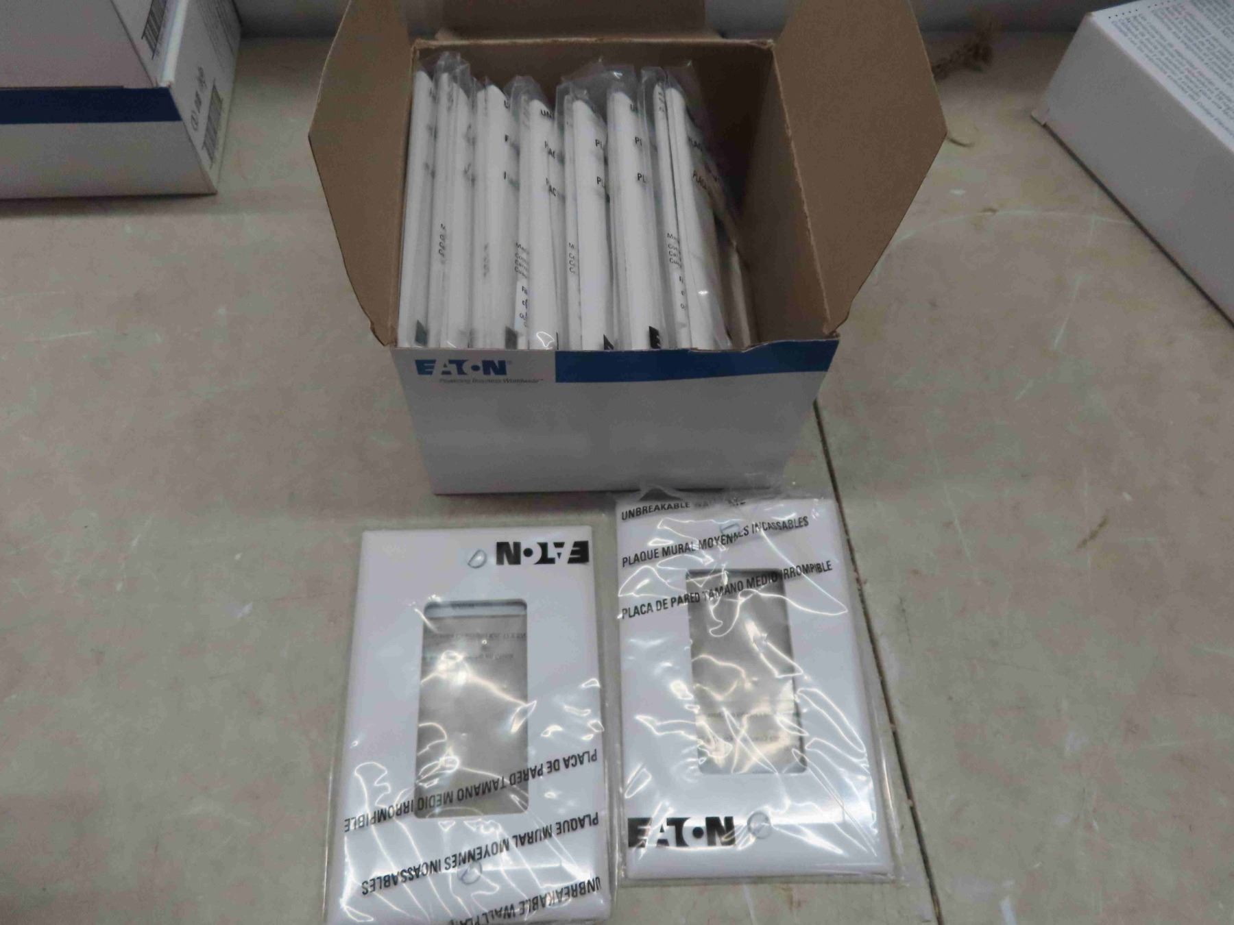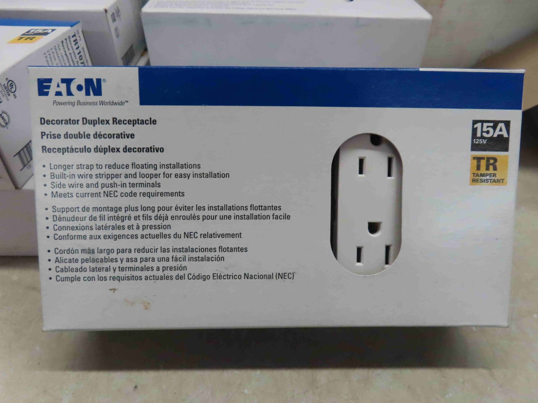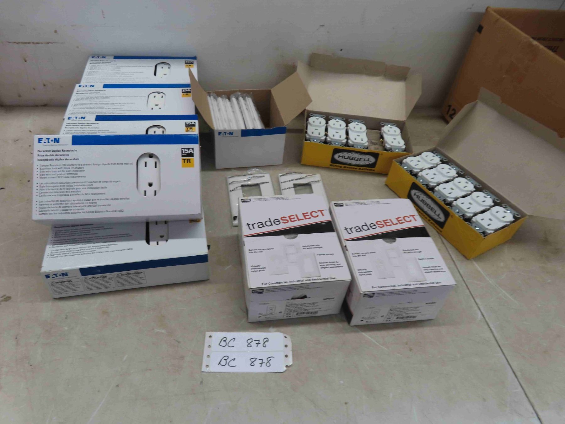 New Electrical Supplies: 10 Boxes, Receptacles, 3 Boxes of Face Plates White