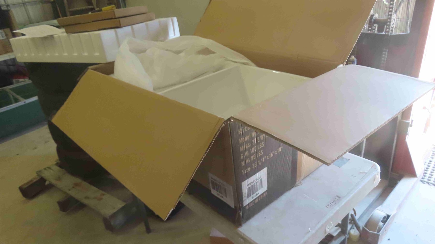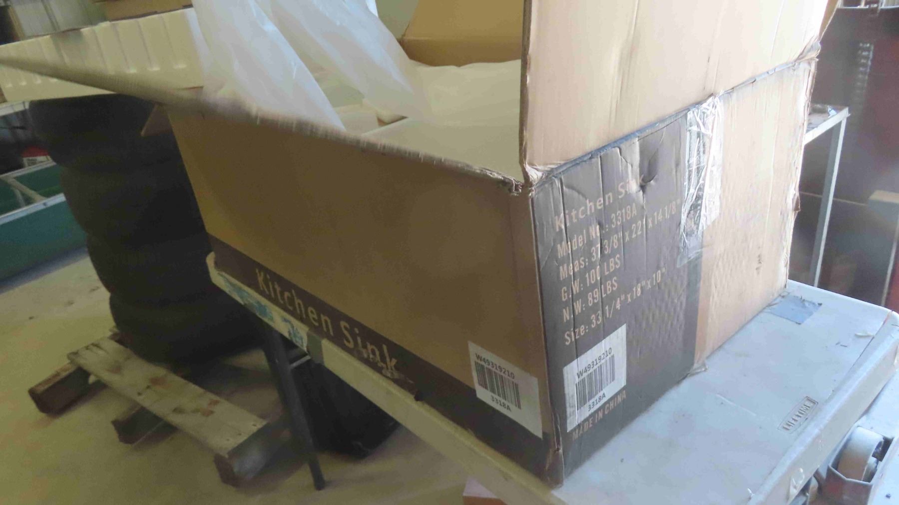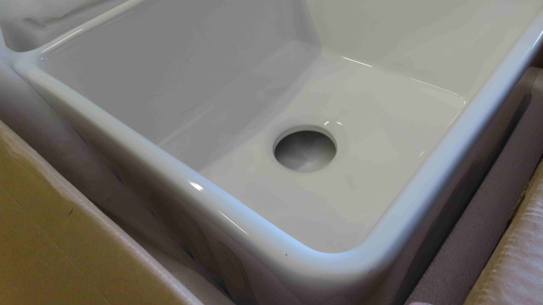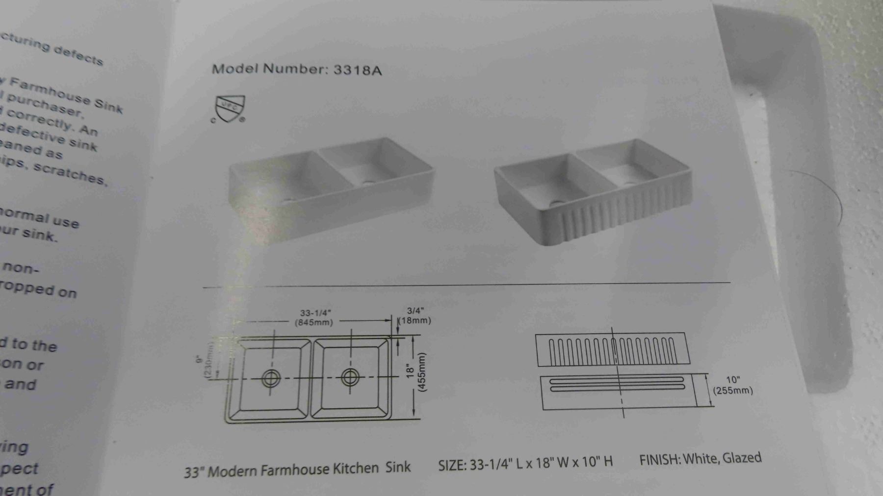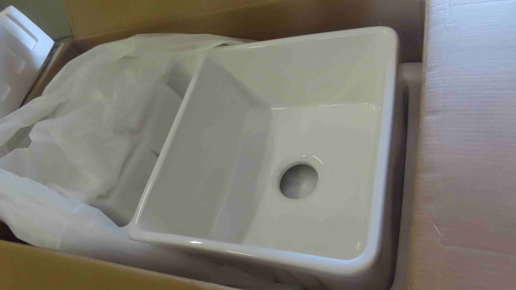 New Farmhouse / Apron Double Bowl Fireclay Kitchen Sink Model 3318A in Box 3.25'' L
