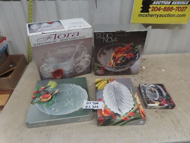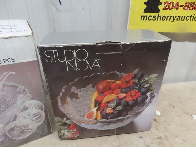 New Flora 26 pc Punch Bowl Set, New Studio Nova Fruit Bowl + 3 New Crystal Trays