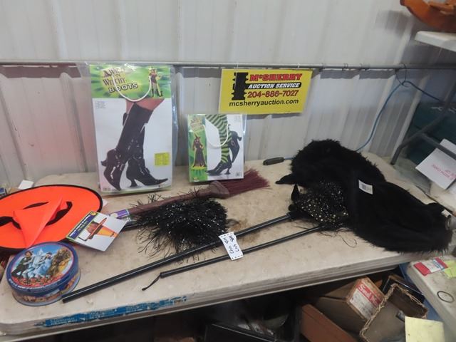 New Halloween Costume Items ; 3 Witches Hat Sets Boots, 4 Brooms