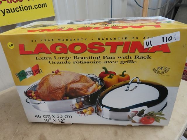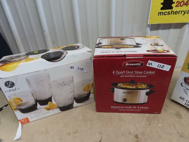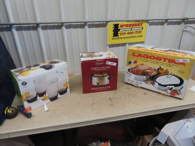 New Lagostina Roasting Pan, New Bravetti 4 Quart Slow cooker, New 16 Piece Glass Set