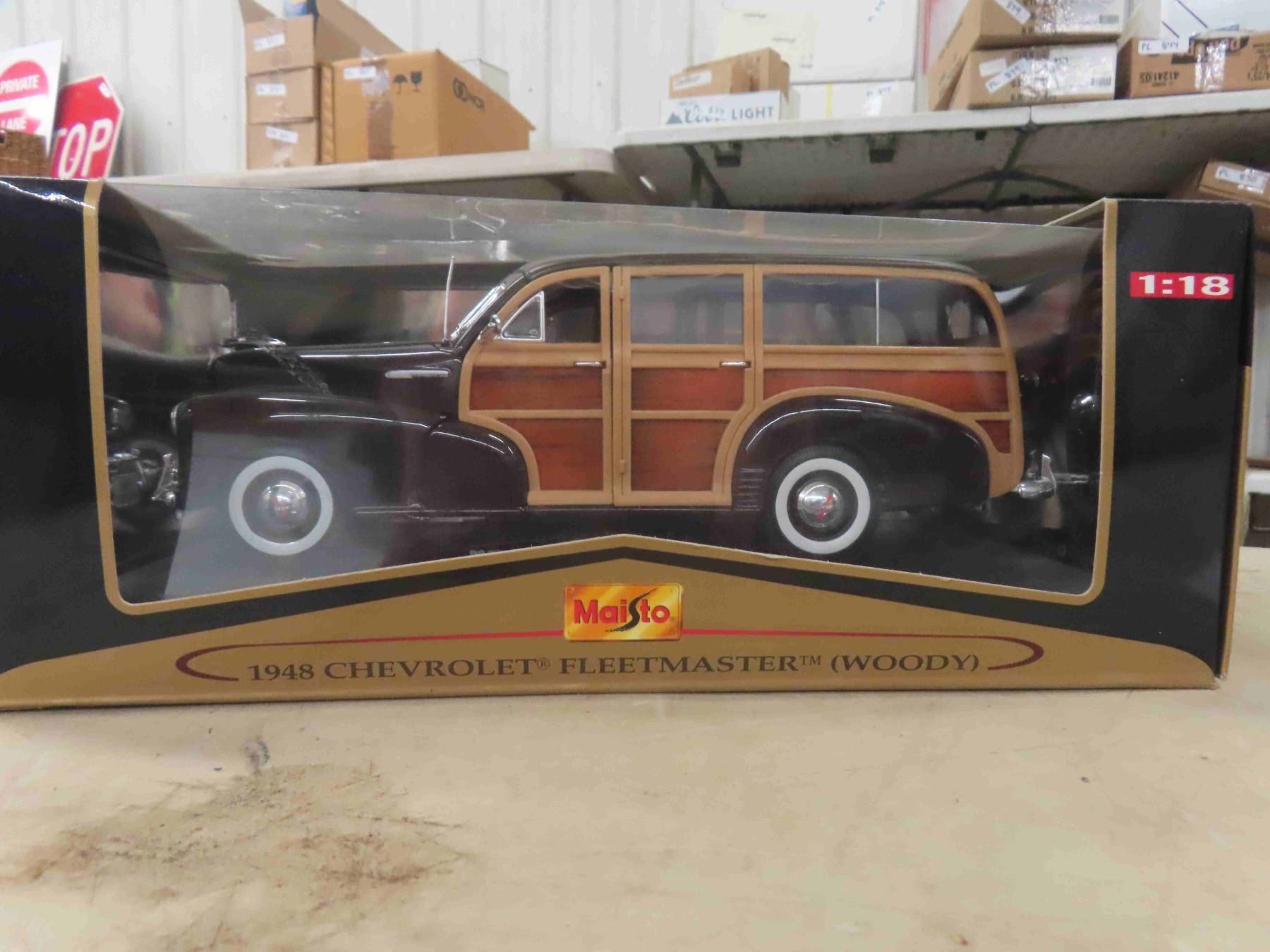New Maisto 1948 Woody 1:18 Scale + New Motor City Classics Die Cast 1:19 Scale 1948 Chrysler Town + Country