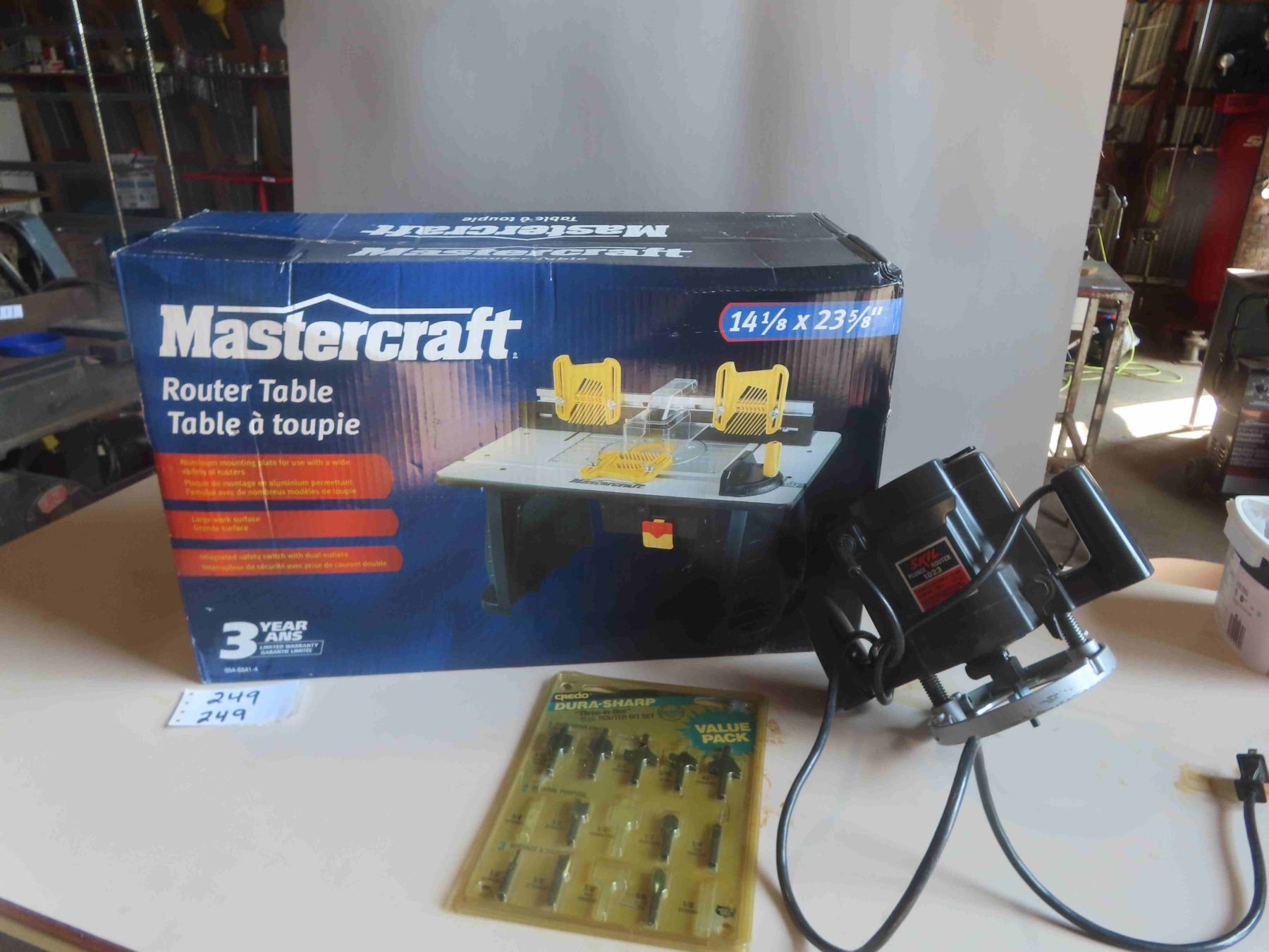 New Mastercraft Router Table 14 1/8'' x 23 5/8'' , Skil Plunge Router 1823 , Router Bits