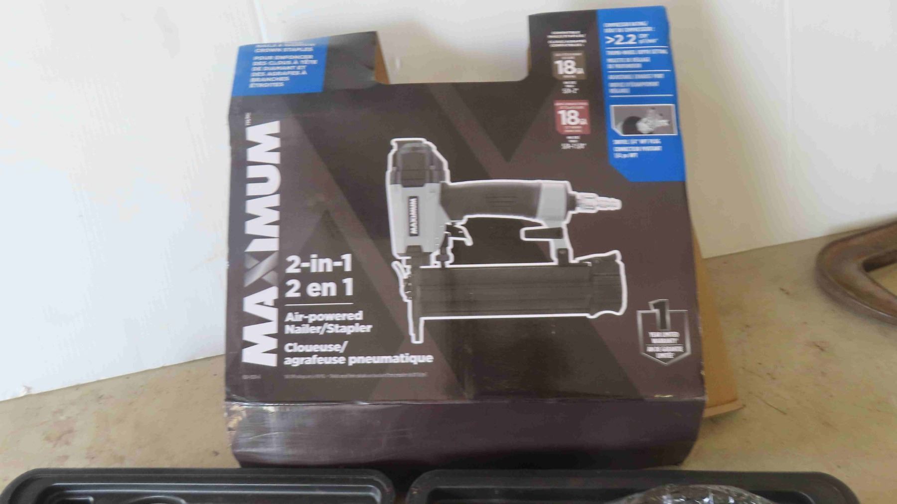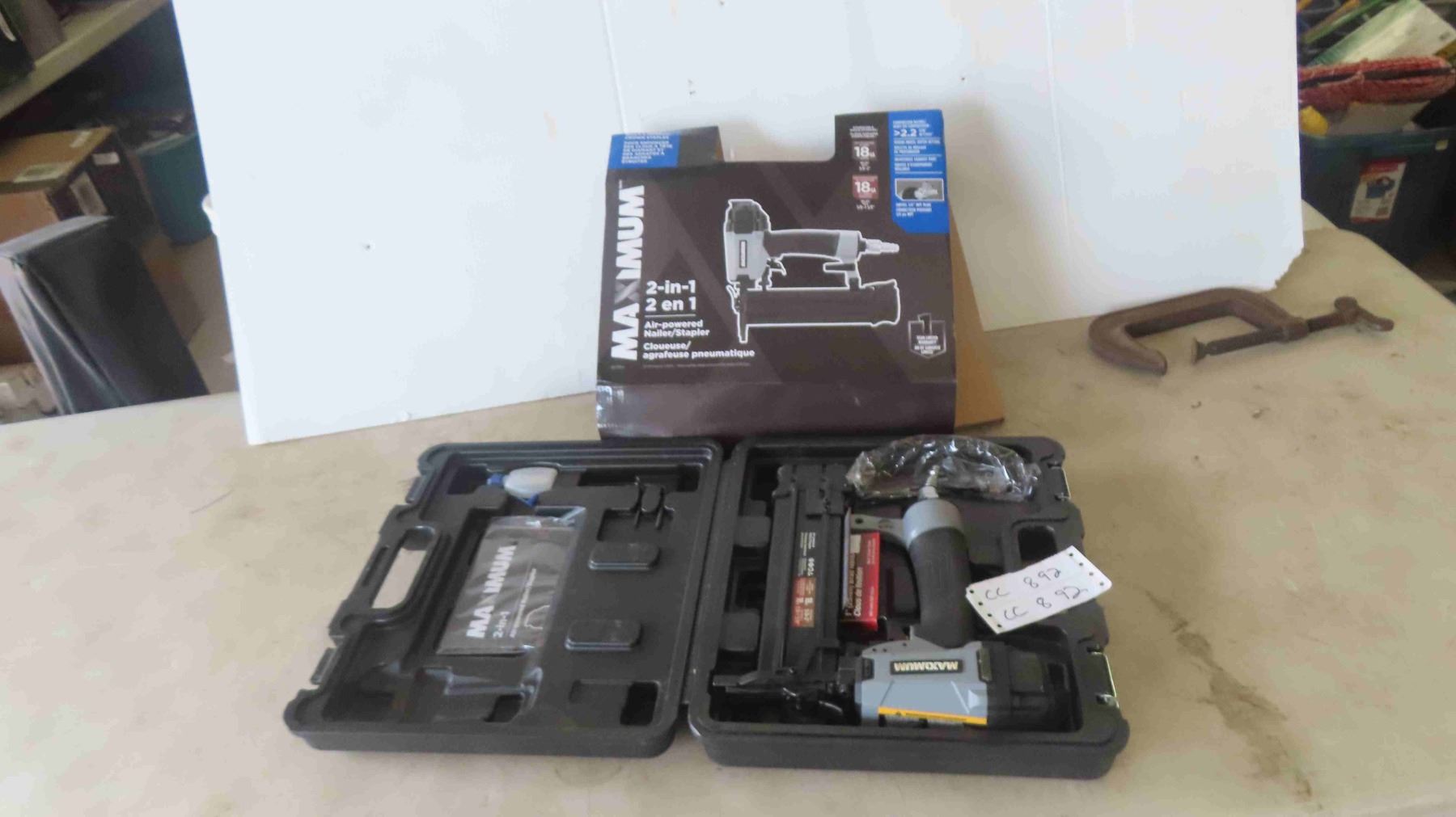 New Maximum 2 in 1 Air Powered Nailer/Stapler with Case