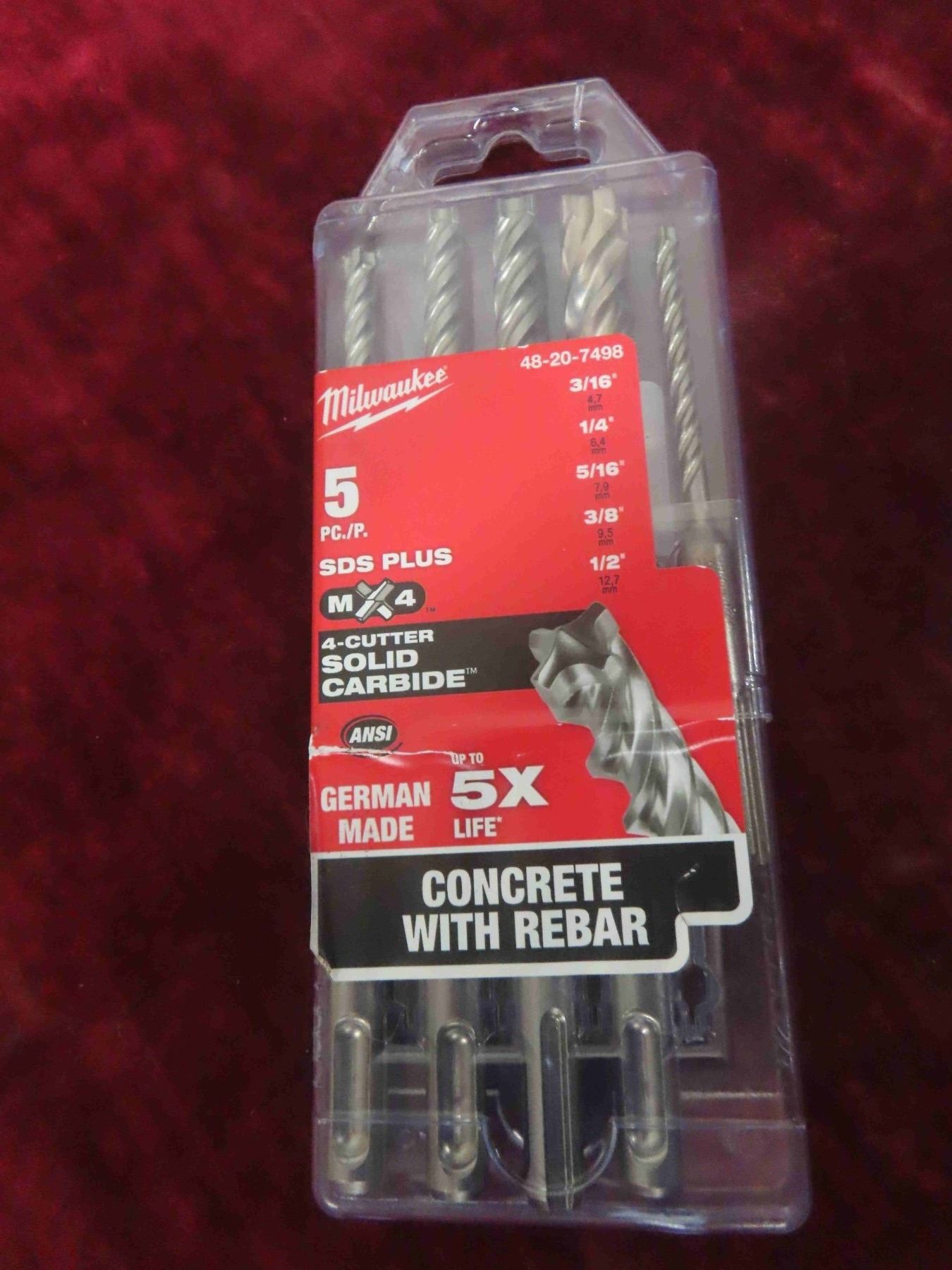 New Milwaukee 5pce 4 Cutter Solid Carbide Drill Bits