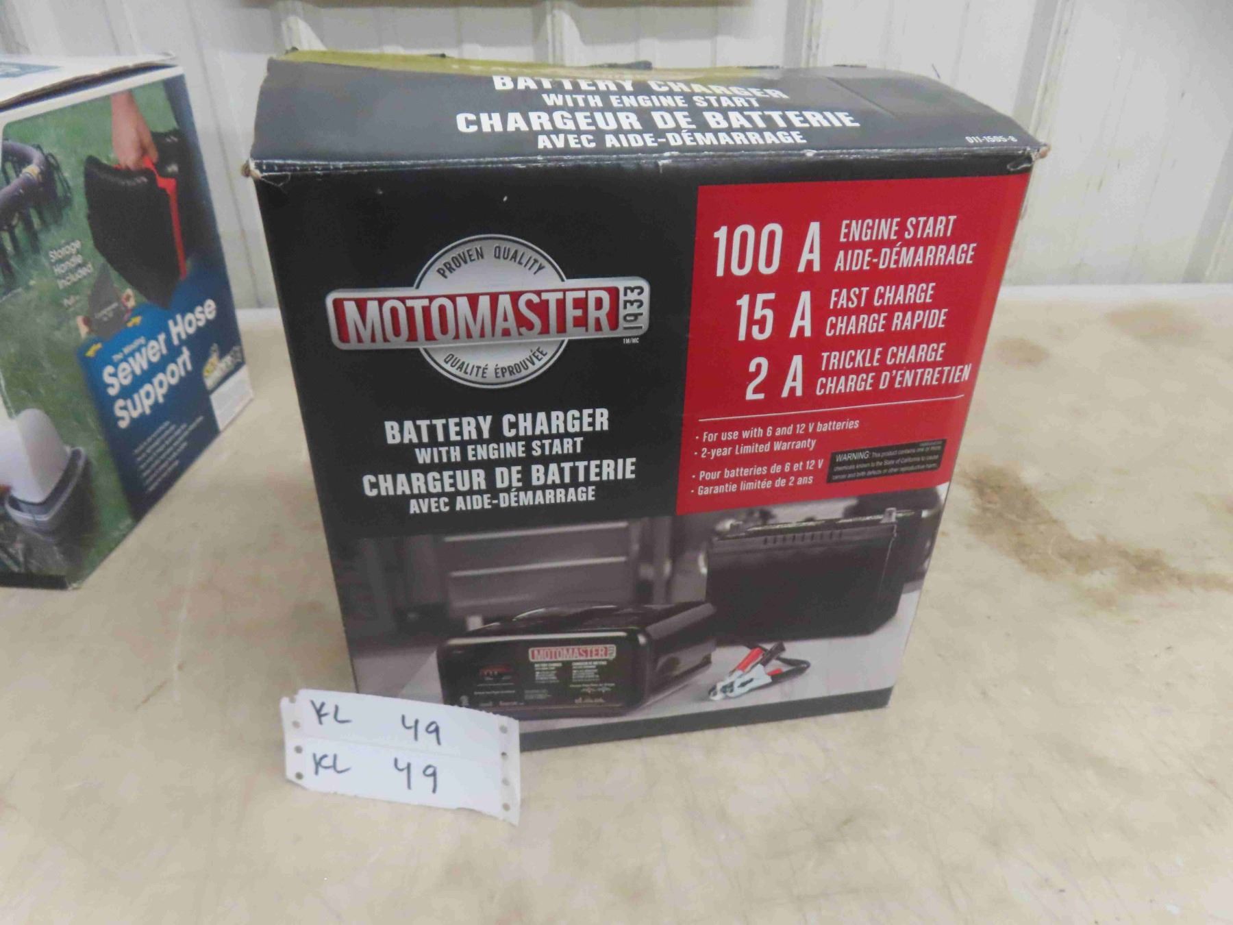 New Motomaster Battery Charger, 100 A Engine Starter, 15 A Fast Charge, 2 A Trickle Charger