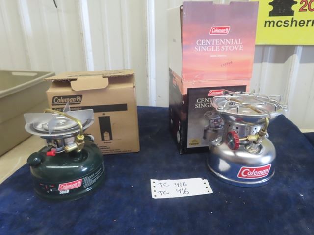 New Old Stock 2 Coleman Stoves; 1) Centennial Model 502A 741J, 1) 508B - Both with Boxes & Pamphlets