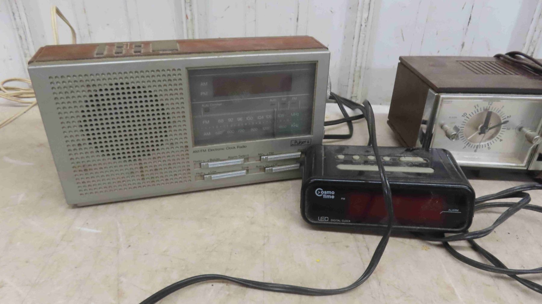 New Old Stock 4 Mini Boom Boxes, 3 Clock Radios , Desk Lamp