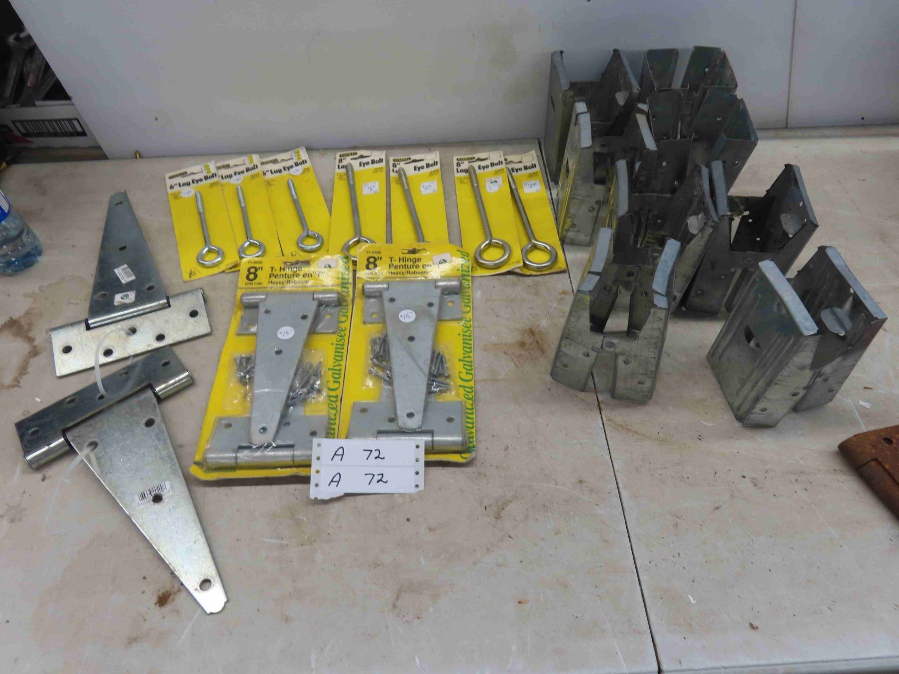 New Old Stock 6'' + 8'' Lag Eye Bolts, 8'' T Hinge, 8 Sawhorse Brackets