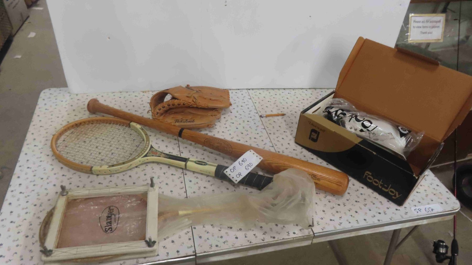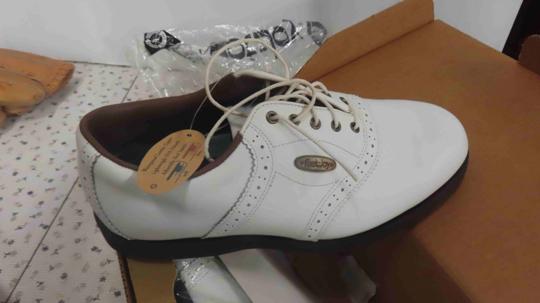 New Old Stock Foot Joy Spiked Size 7 1/2 , Spalding Baseball Glove , H+B Grand Slam Bob Bailey Bat, Plus