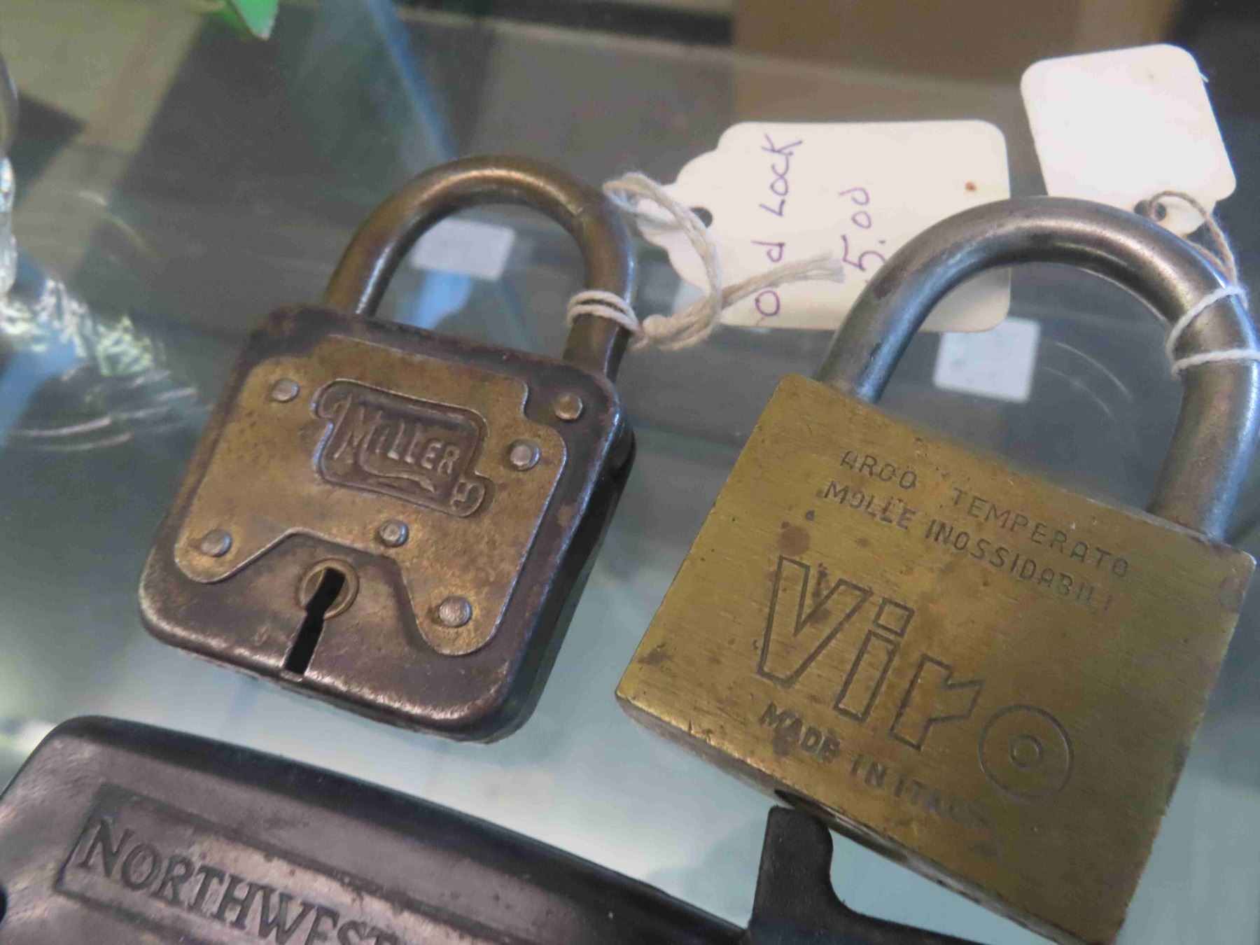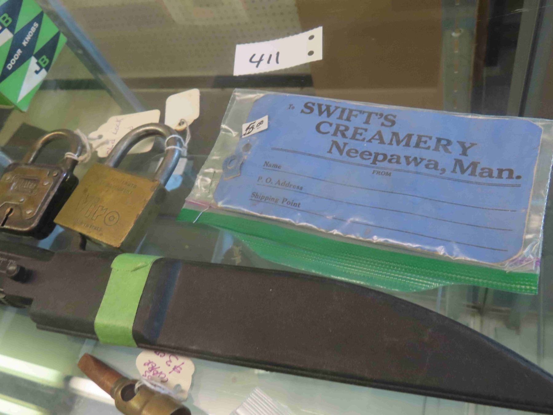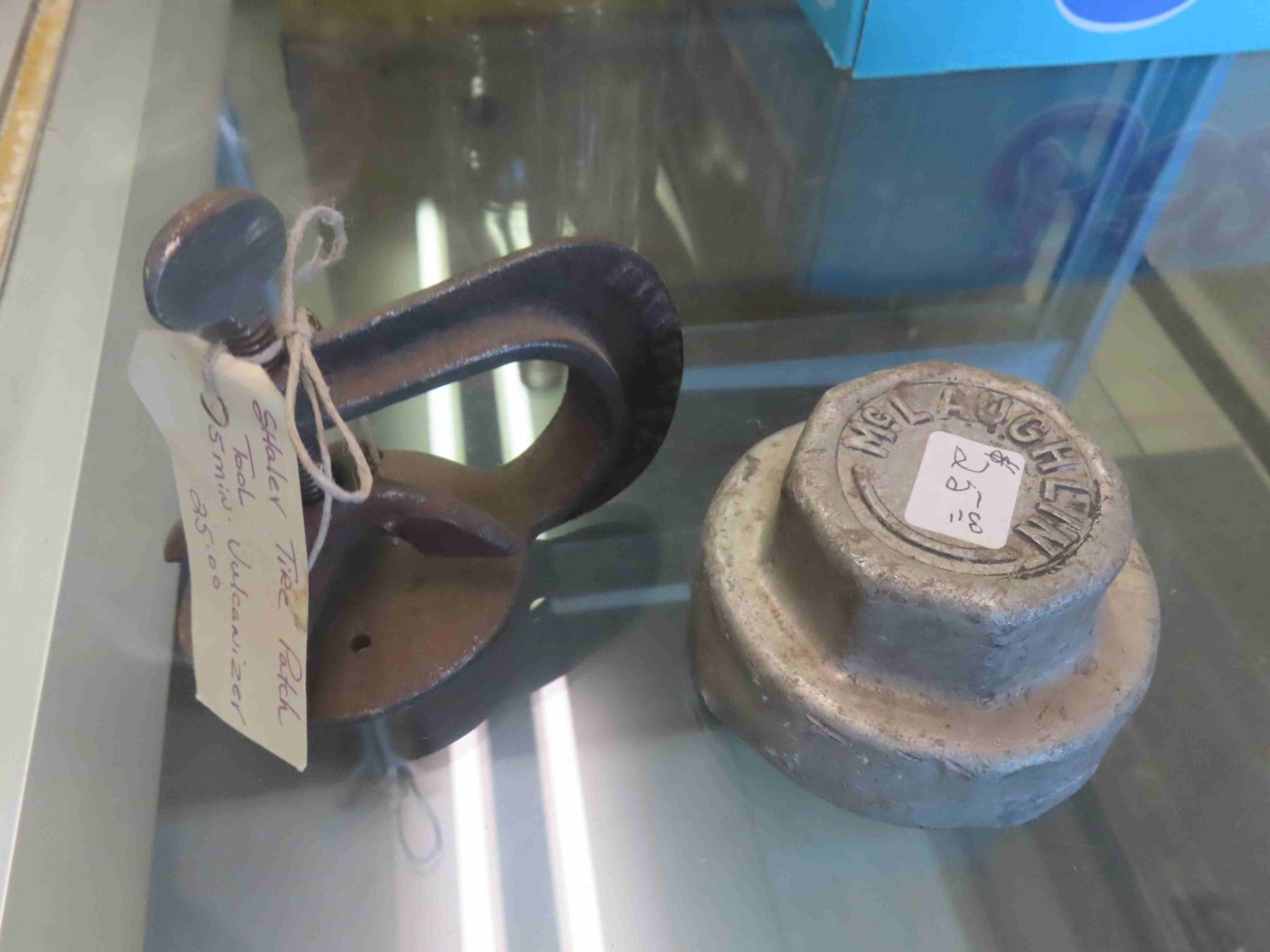 New Old Stock Glass Door Knobs with Box, 2 Castrol Oil Tubes, McLaughlin Cap, Tire Patch, Pad Locks