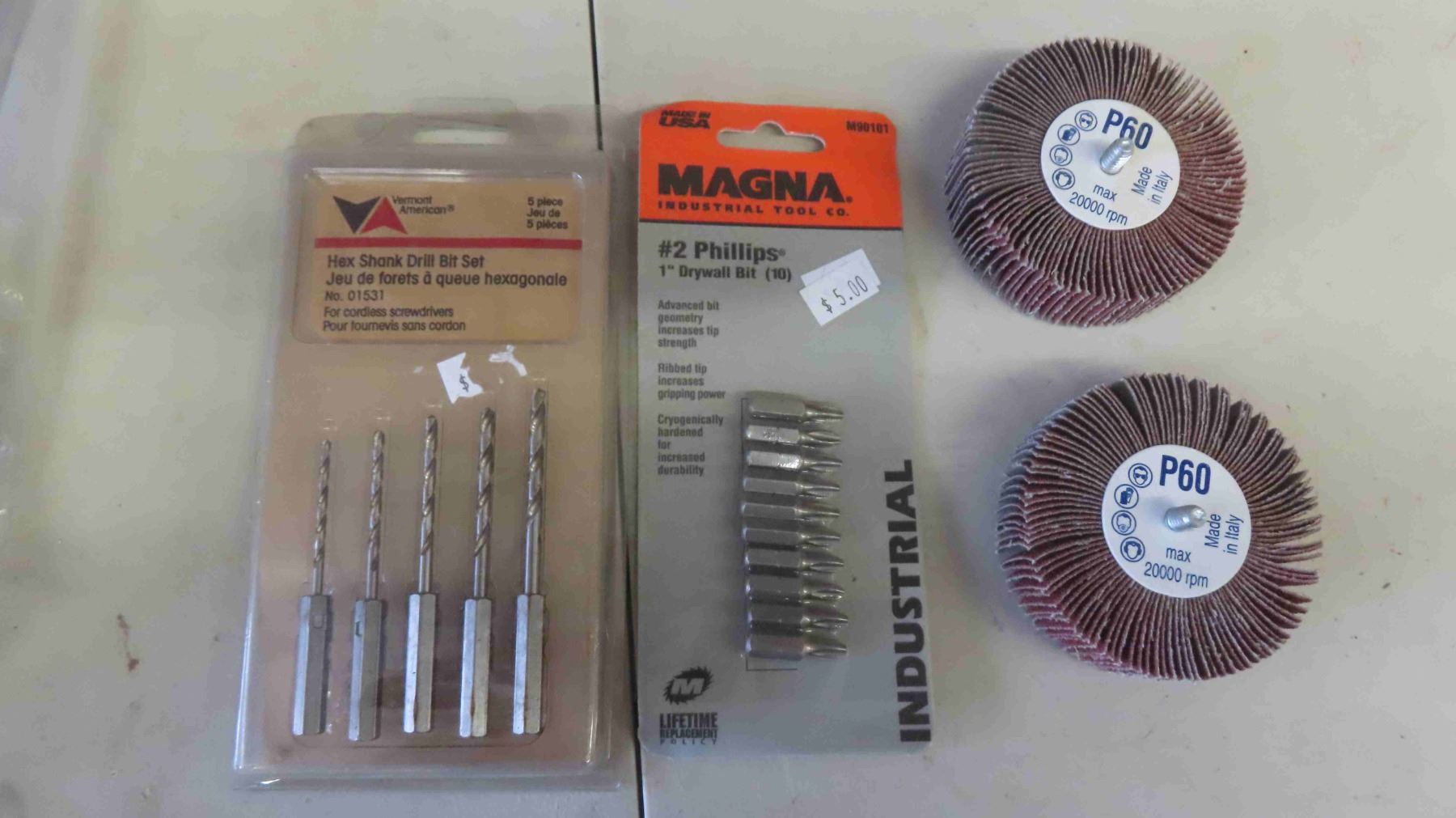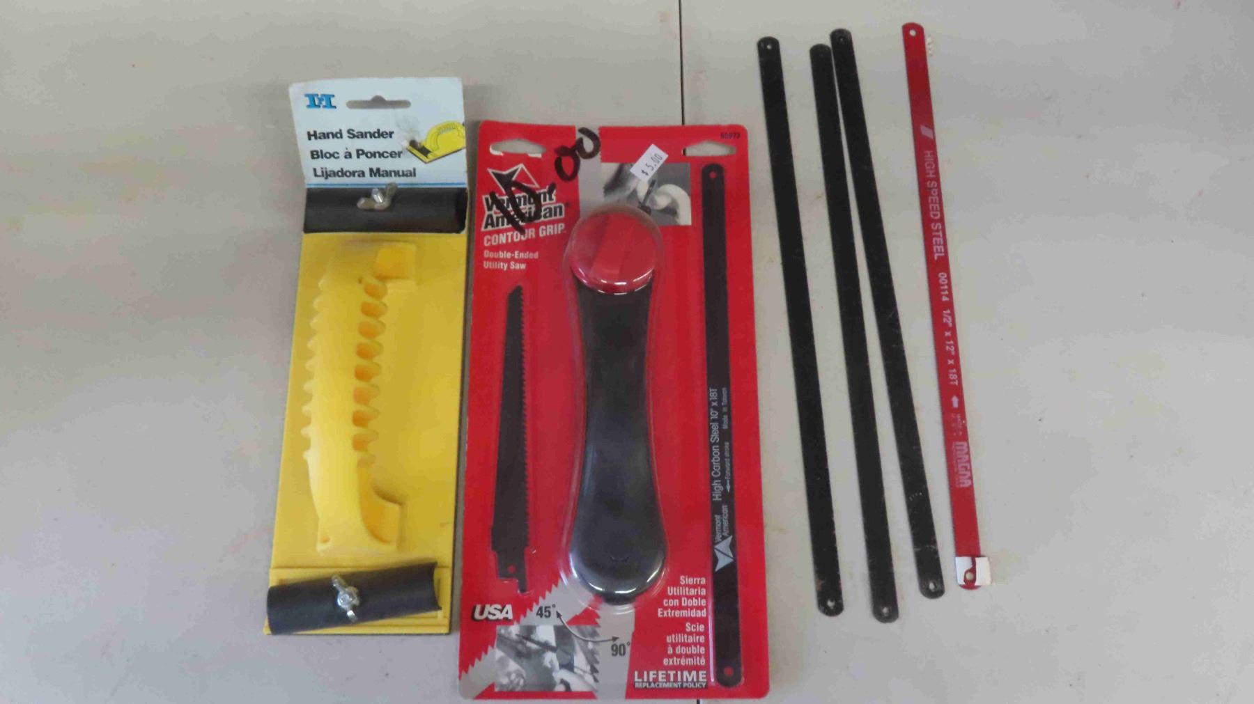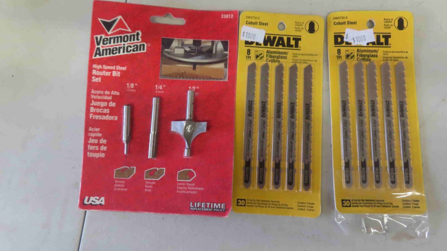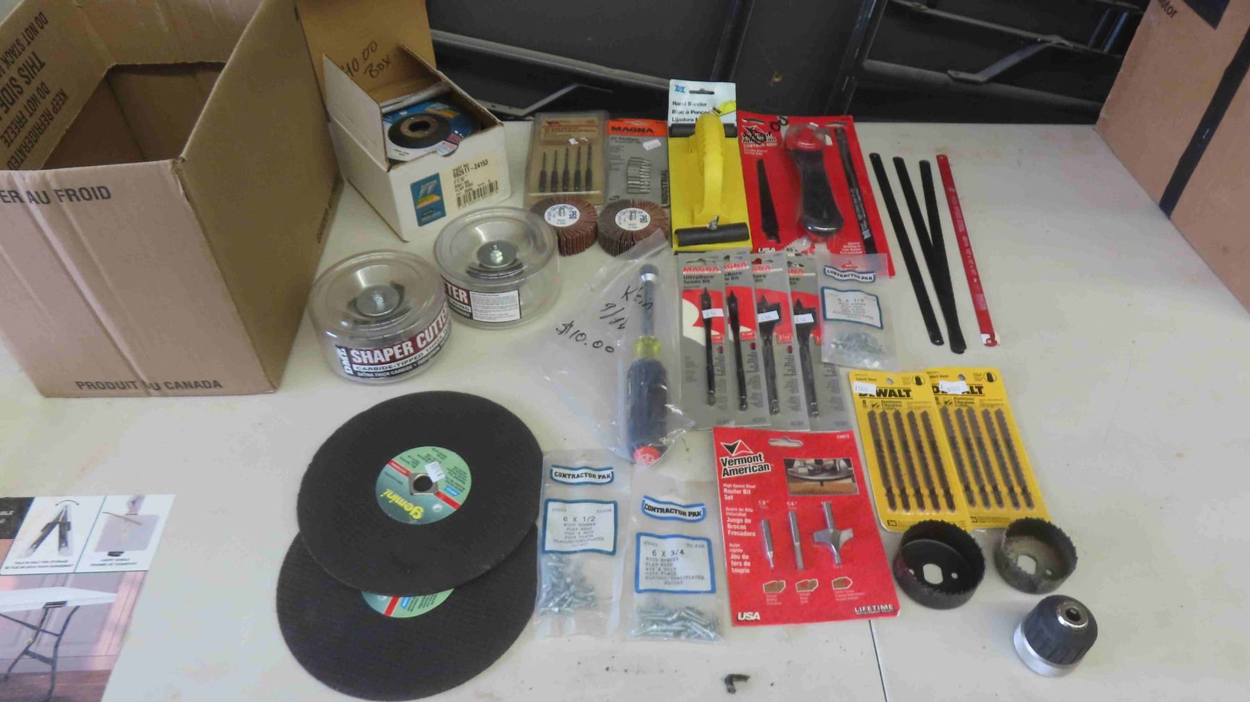 New Old Stock Hack Saw Blades, Hole Saw, Router Bits, Drywall Bits, 5'' Flap Disc, Plus