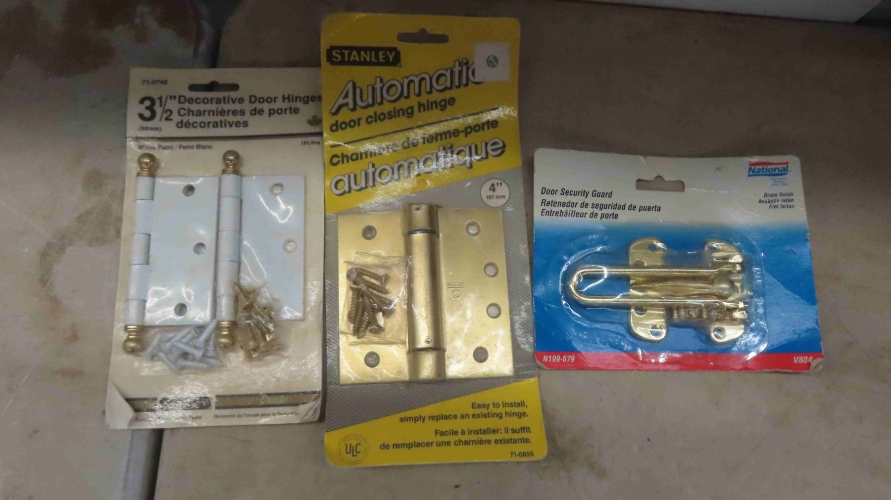 New Old Stock Hinges , Door Pulls , Chain Door Guard , Double Acting Spring Hinge, Plus