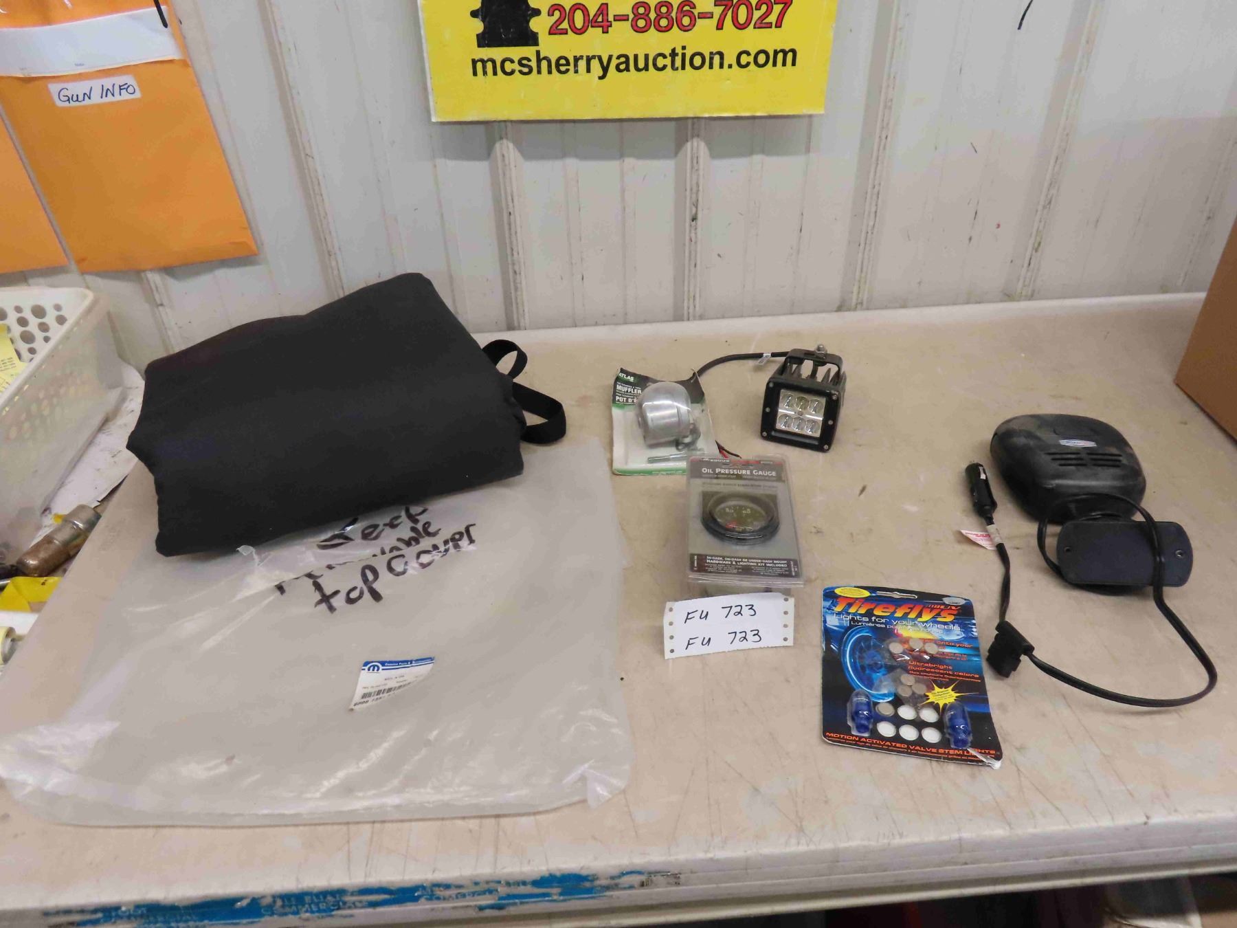 New Old Stock Jeep Removable Glass and Top Cover , Road Pro Heater/Defroster/Fan , LED Pod Light Bar, New Old Stock Oil Pressure Gauge & More