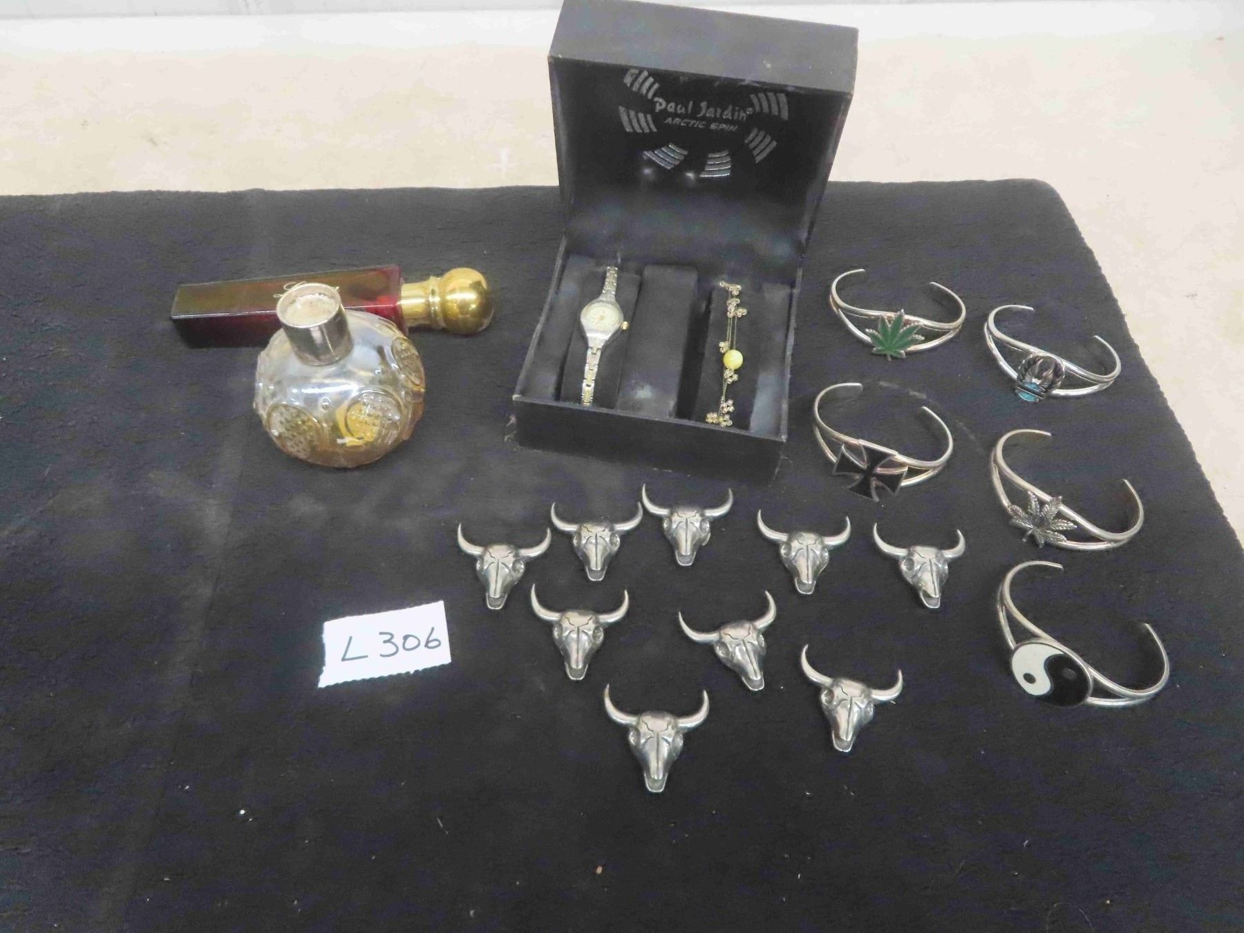 New Old Stock Ladies Watch + Bracelet, 2 Empty Perfume Bottles, 9 Speciality
