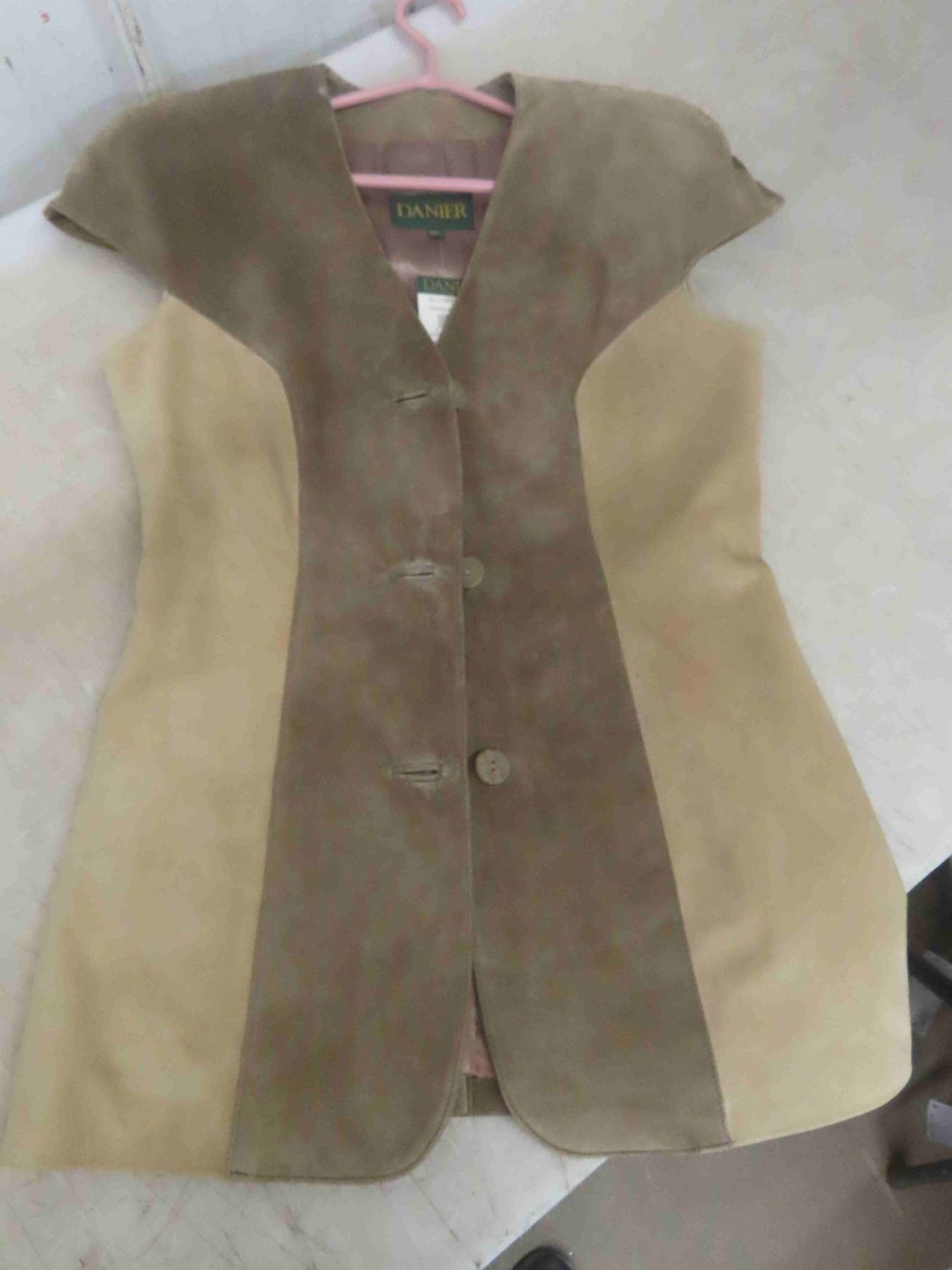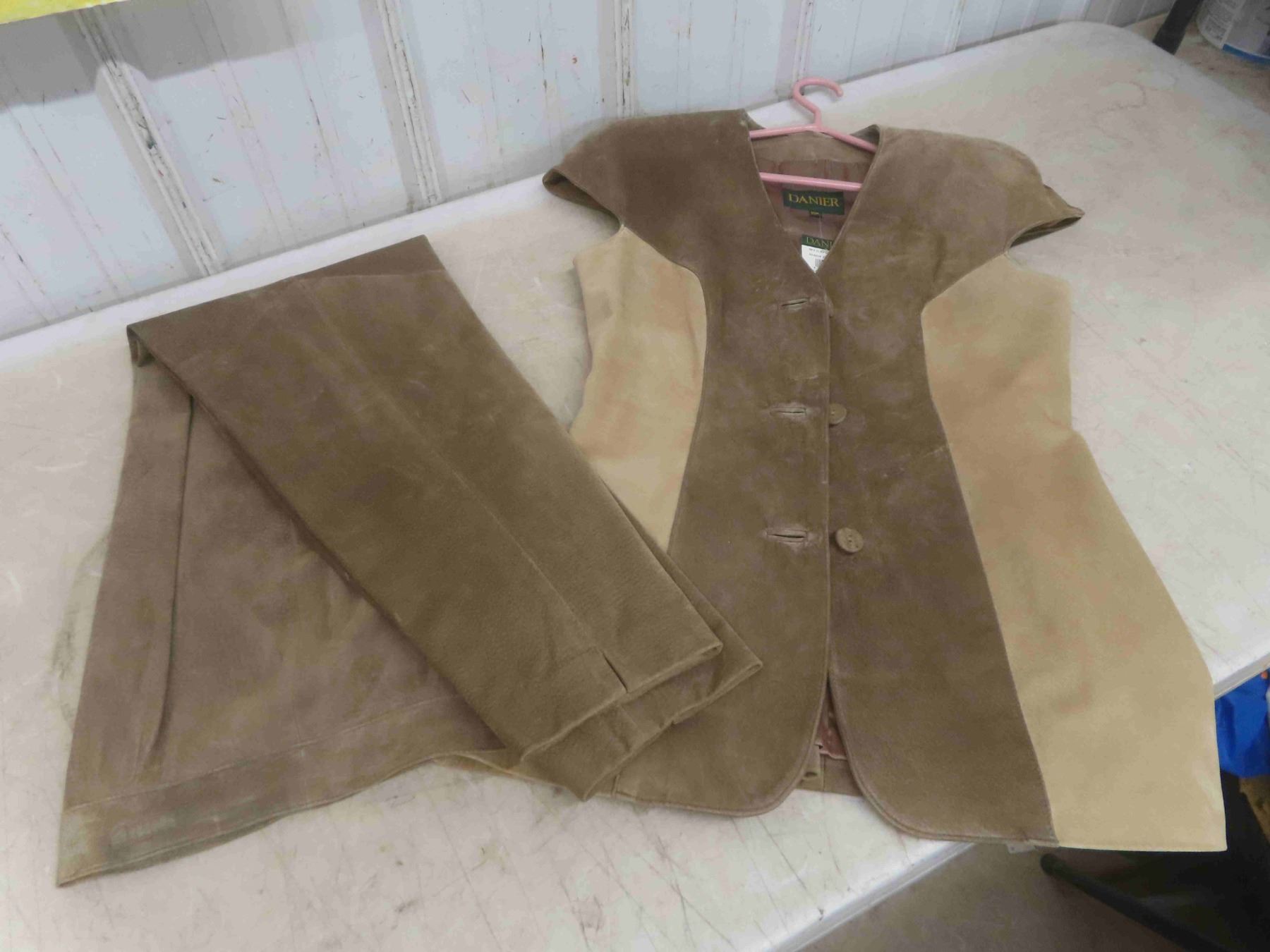 New Old Stock Suede: Skirt Size12, Pant Suit Size M, Vest Size Small,