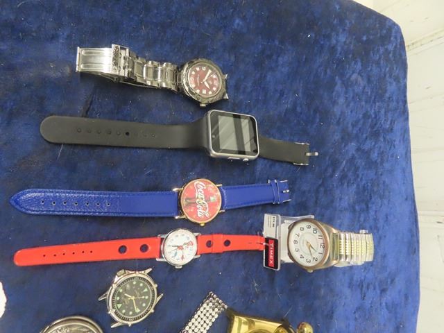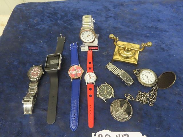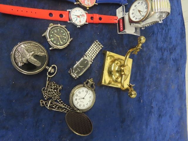 New Old Stock TImexwatch, Antique Pocket Watch Stand, 2 Pocket Watches, Coke Watch, Cat in Hat Dr. Seus Watch plus more