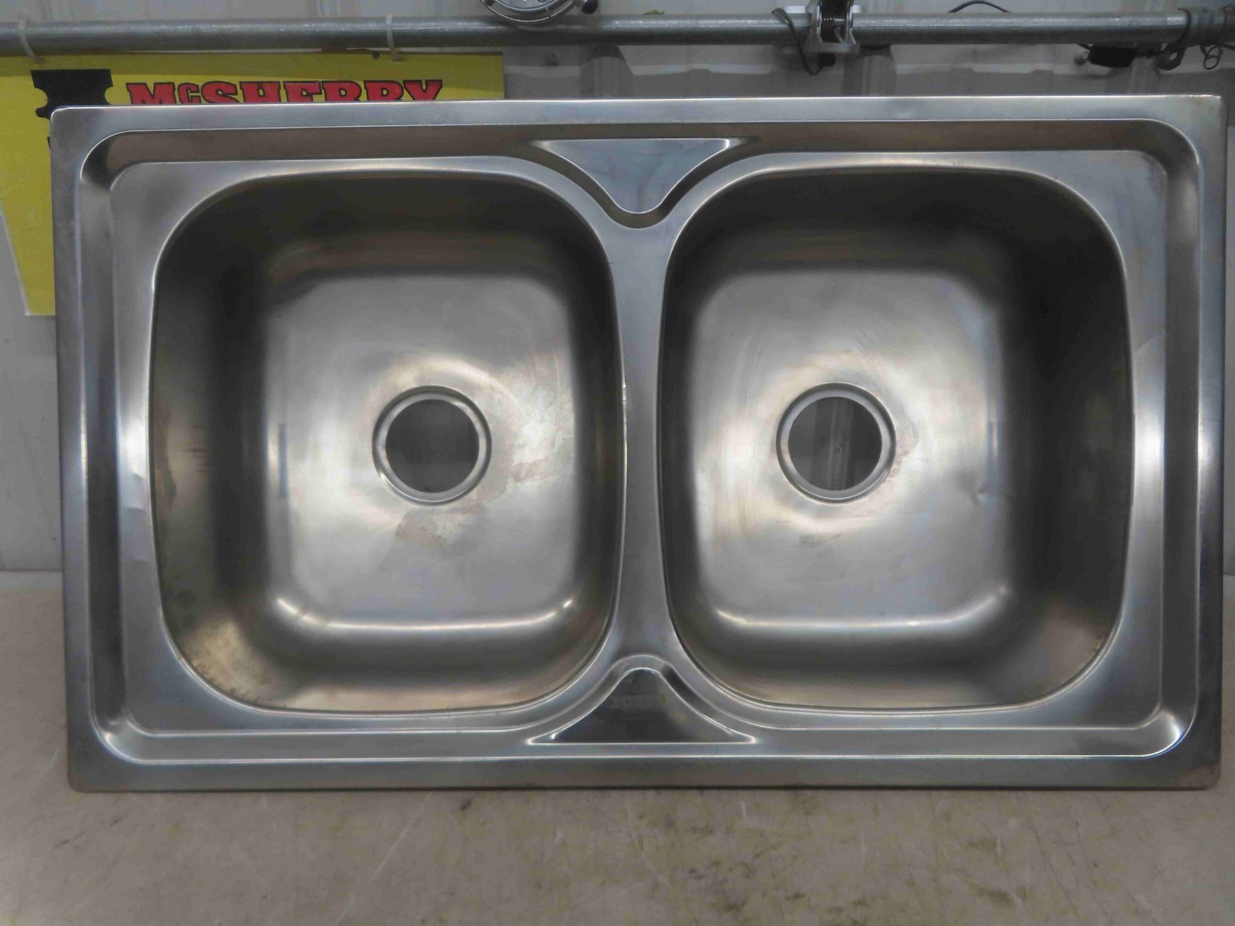 New Old Stock Zoho Stainless Steel Double Sink 33 1/2'' x 19 3/4'' x 7''