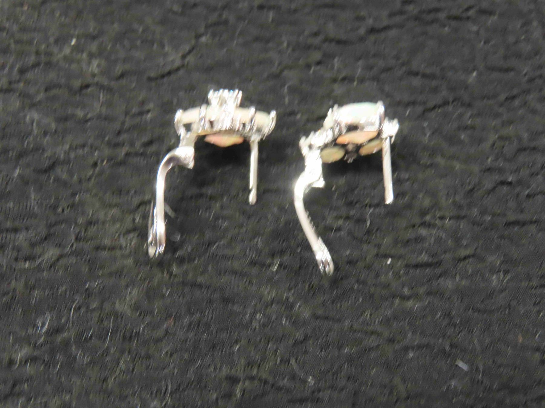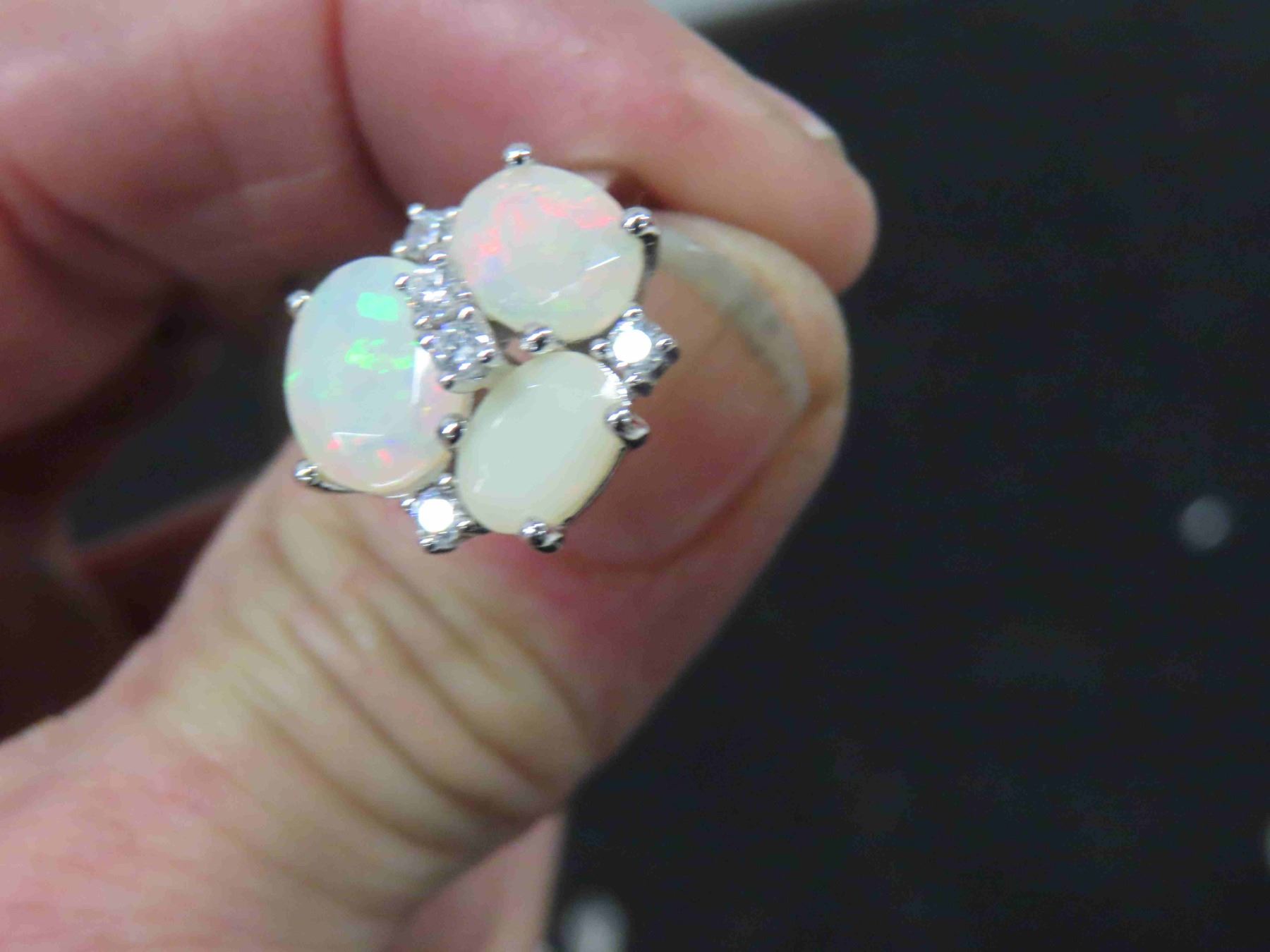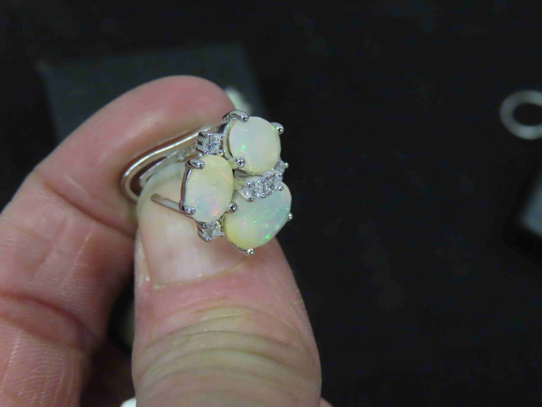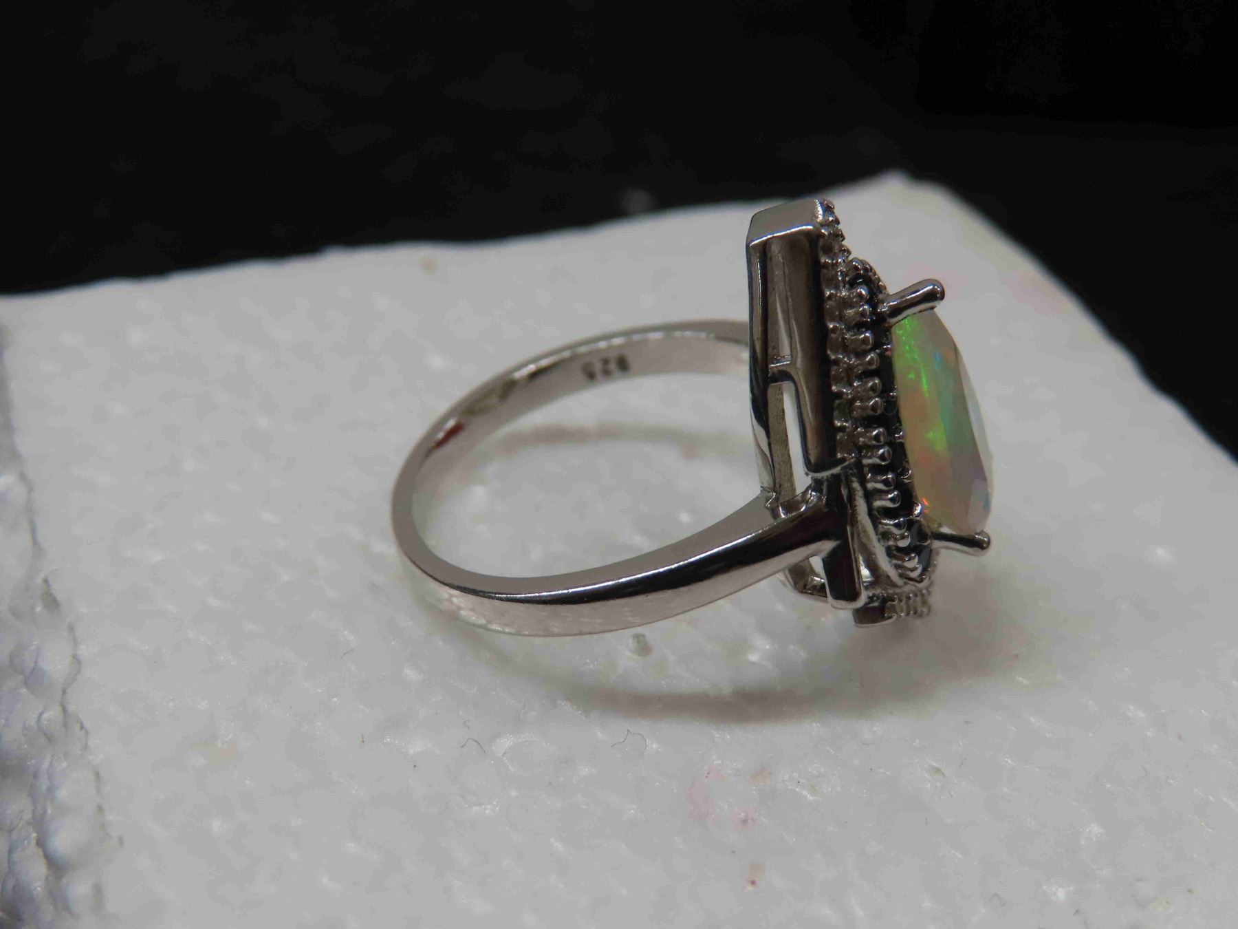 New Opal Ring and Earrings Combination : RING - Pear Shaped Fire Opal 10mm x 7mm Surrounded by Black Spinel on Sterling Silver , Weight 3.90 Grams Size 6 : EARRINGS - Oval Fire Opal on Sterling Silver with Zirconia Weight 6.00 Grams