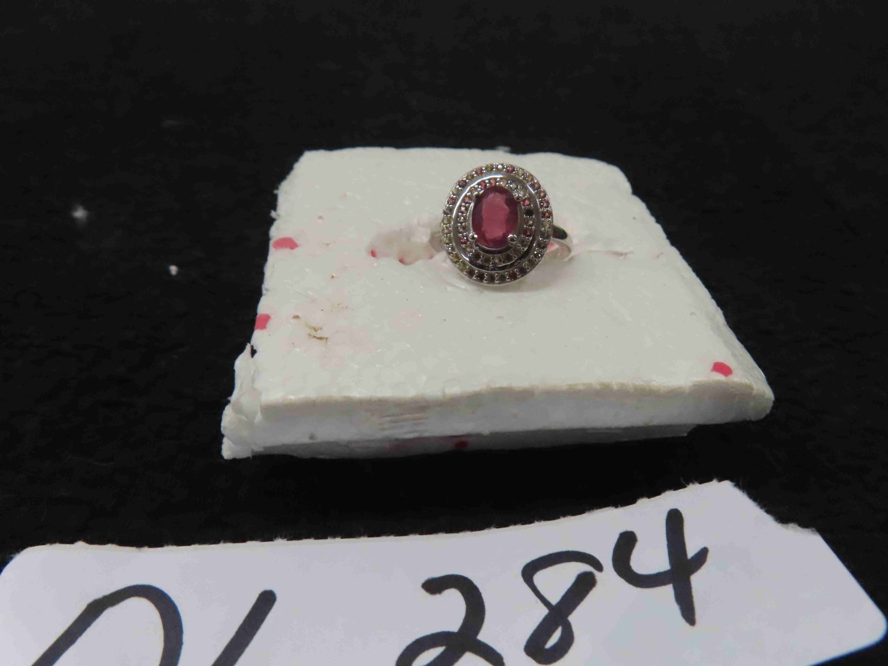 New Oval Red Ruby 8mm x 6mm Ring with Small Sapphire Surrounding on Sterling Silver : Total Weight 4.2 Grams , Size 8