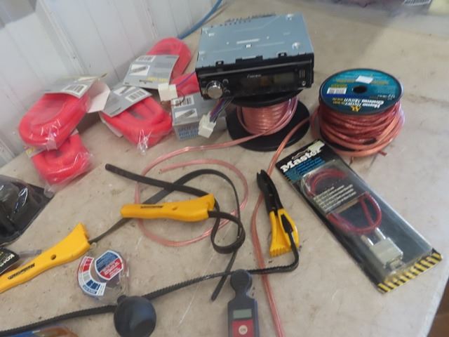 New Pioneer Auto Stereo, Speaker Wire, Filters, Filter Wrench, Lock, Tire Repair plus more