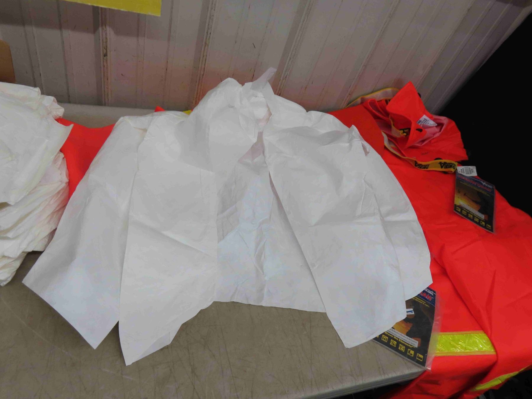 New Rain Gear 3XL , Pants , Box of Disposable White Shirts, Plastic Aprons