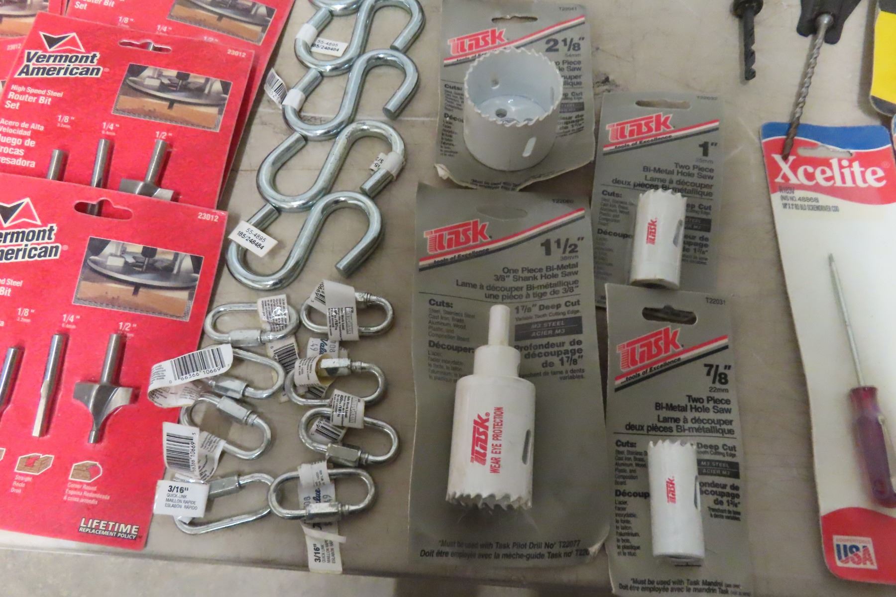 New Router Bits, Hole Saws, Screwdrivers, Dust Masks, S Hooks