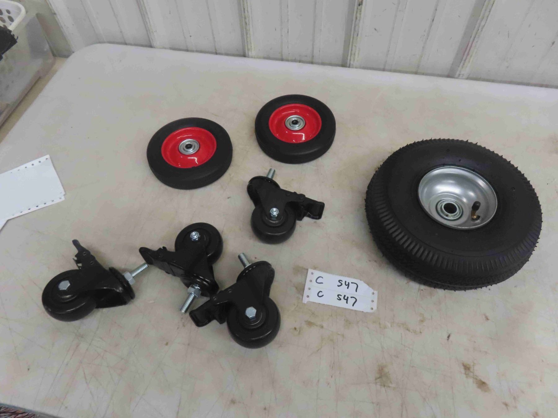 New Set of 4 Caster Wheels 3'' , 2 New 6x1.5 Solid Rubber Wheels with Rim , Inflatable 4.10/3.50 Tire and Rim