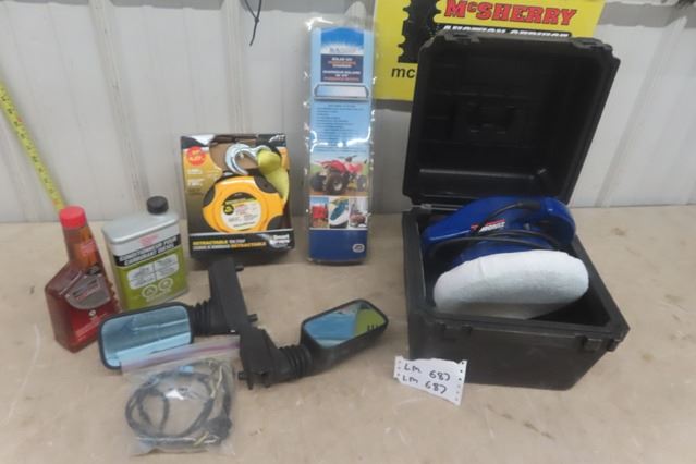 New Simoniz Power Car Polisher, 3000lb Retractable Tow Strap, New Solar 12V Power Sports Charger, Set of Quad Mirrors, Diesel Fuel Conditioner