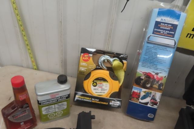 New Simoniz Power Car Polisher, 3000lb Retractable Tow Strap, New Solar 12V Power Sports Charger, Se
