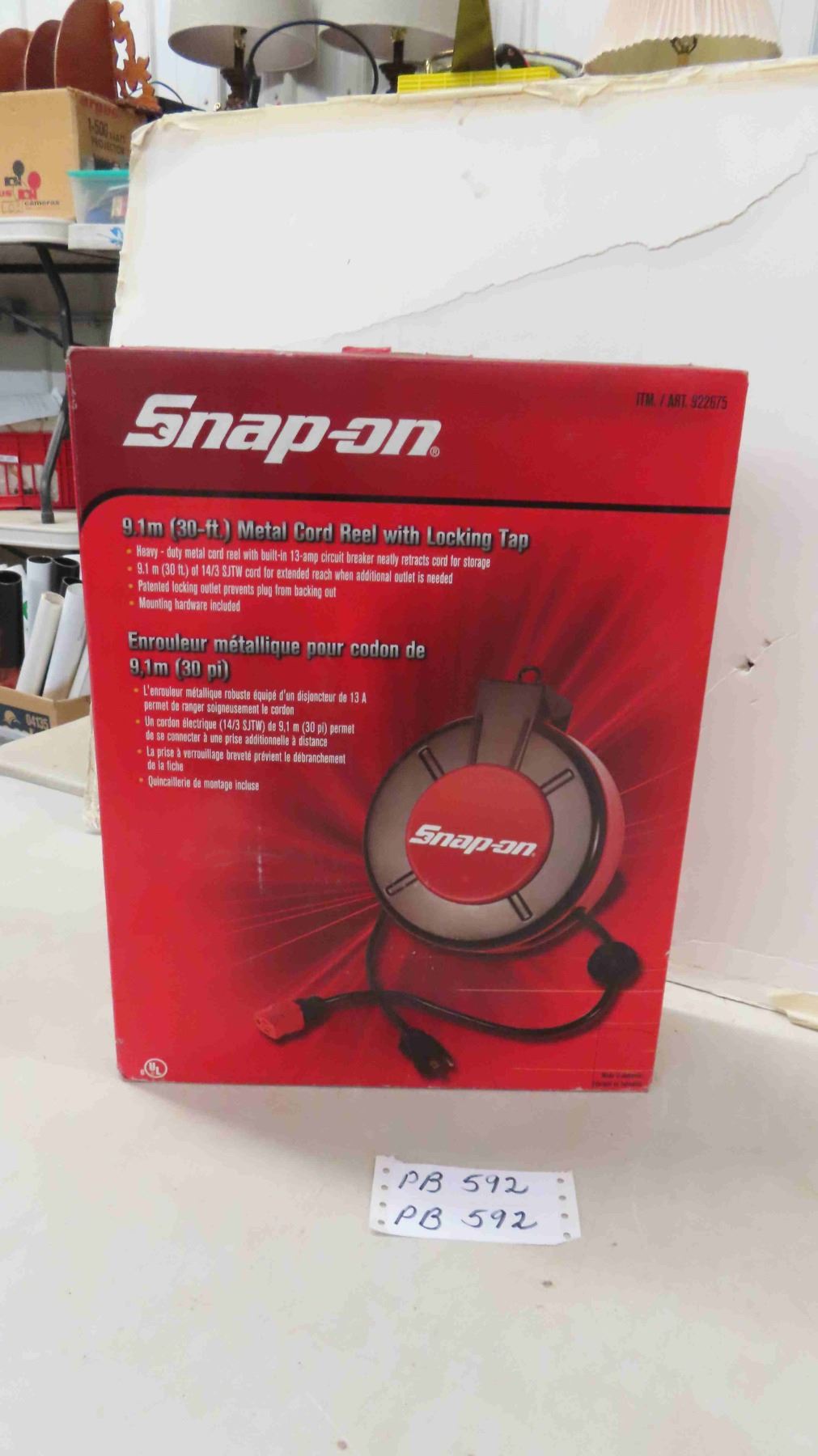 New Snap-On 30' Metal Cord Reel with Locking Top
