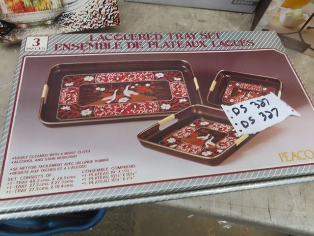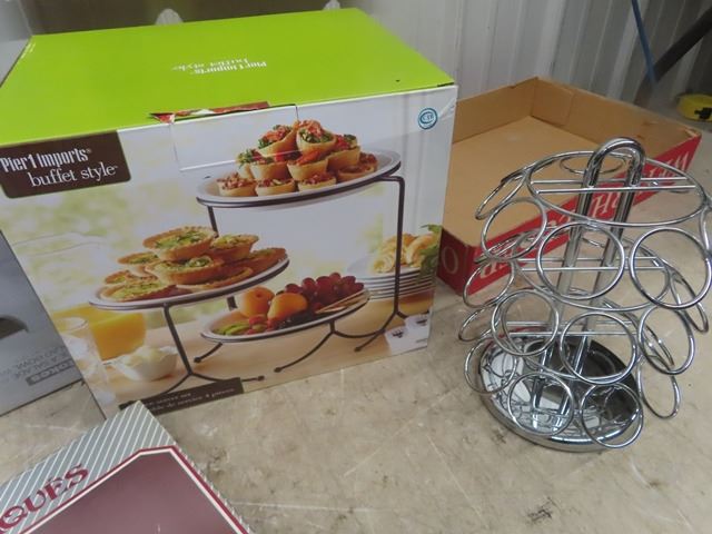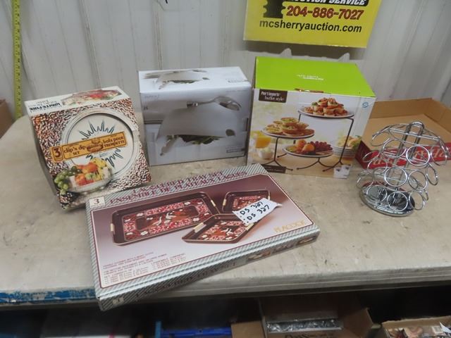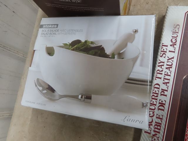 New Stokes Salad Bowl Set, Pier 1- 3 Tier Tray Set, 3 pc Chip n Dip, 3 pc Tray Set