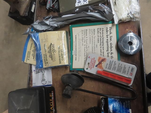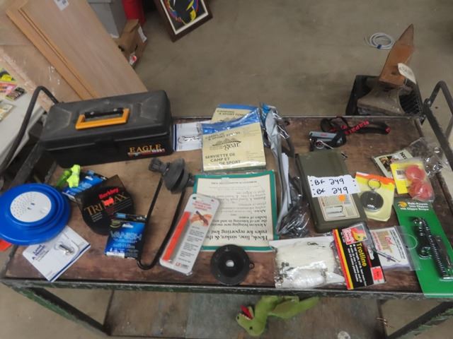 New Tackle Box, Fishing Line, 100' Trot Line, Multi Purpose Line Cutter, Hook + Lure Sharpener plus more