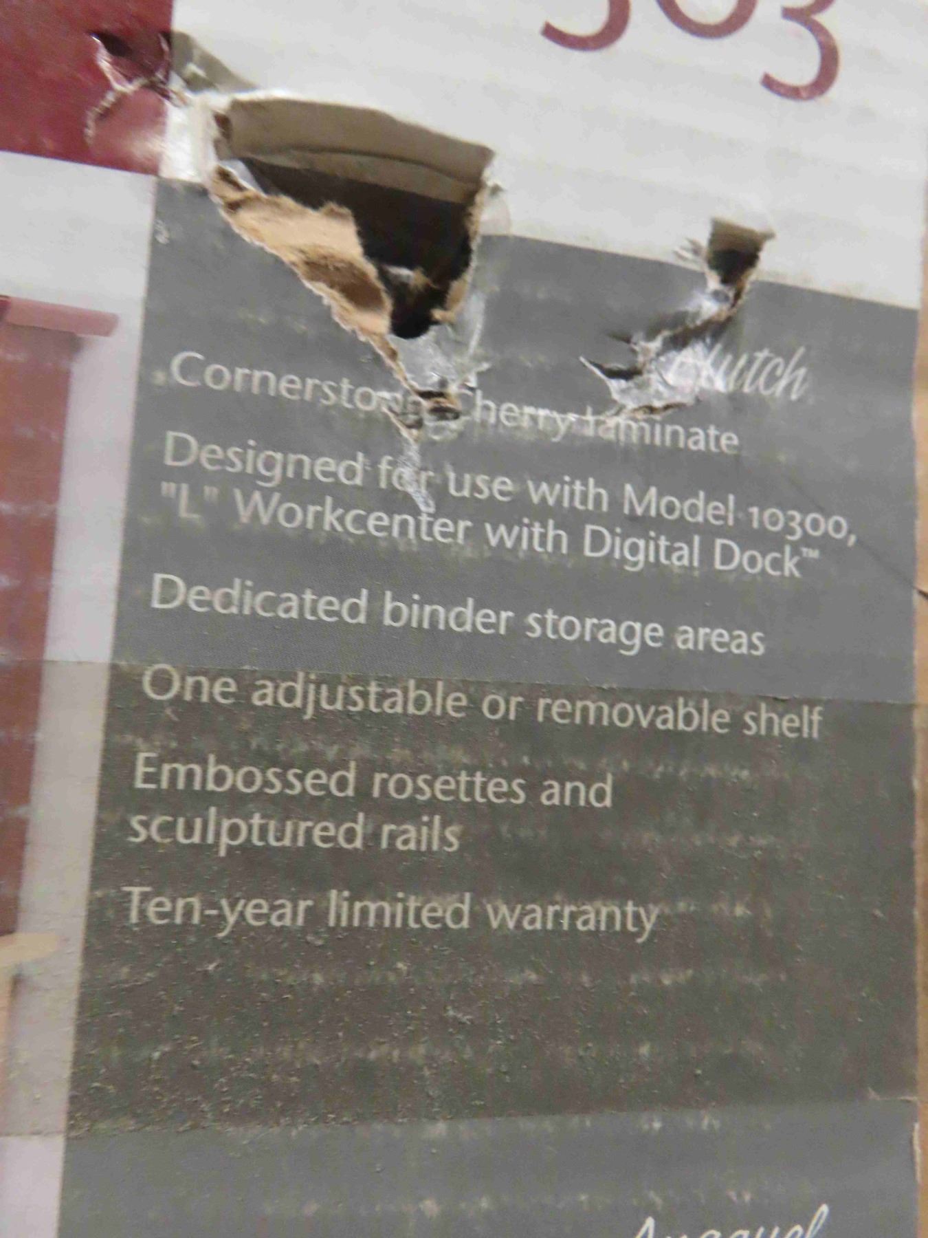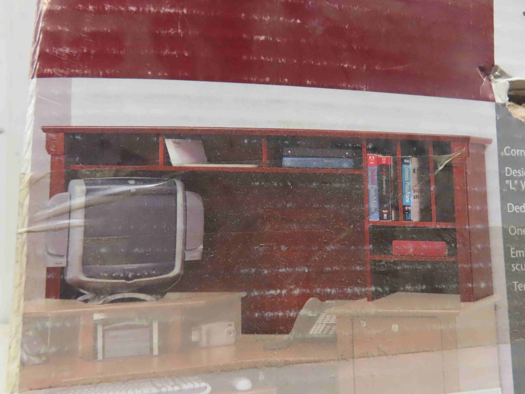 New Unassembled in Box Corner Cherry Laminate Work Center with Digital Dock