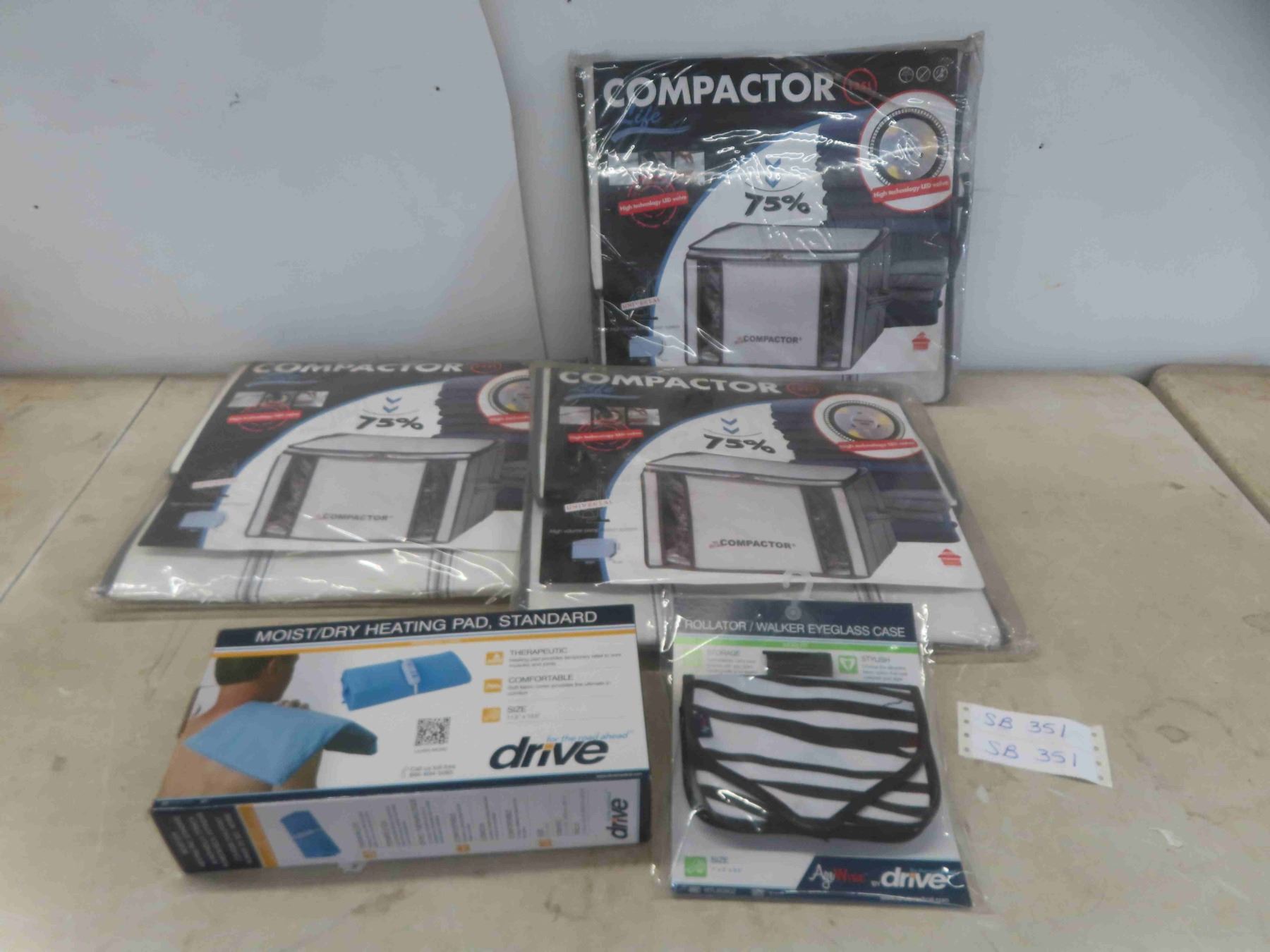 New Walker Eyeglass Case, Heating Pad, 3 Compactor Bags