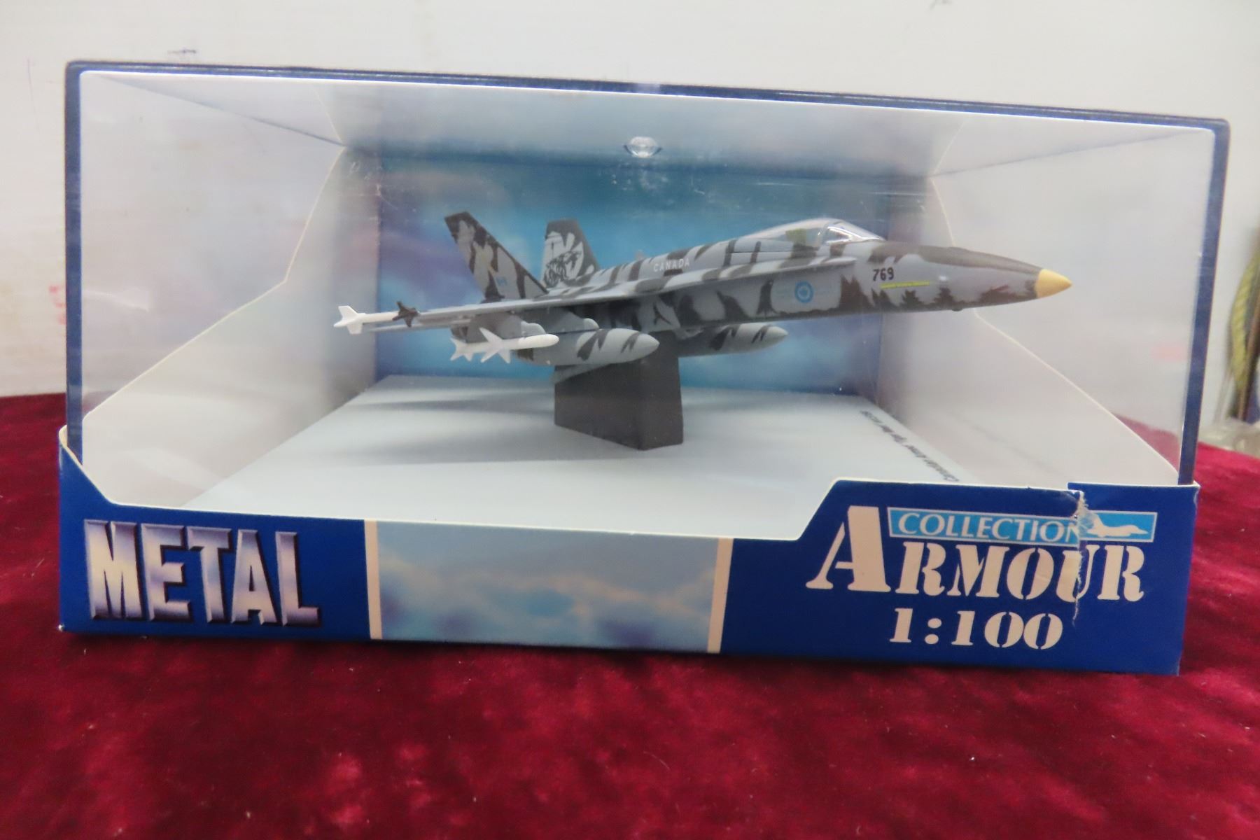 New in Box Metal Armour 1/100 Scale Canadian Armed Forced CF18 Hornet + Die Cast Model FA-18 Hornet ErH TransWorld Boeing 737