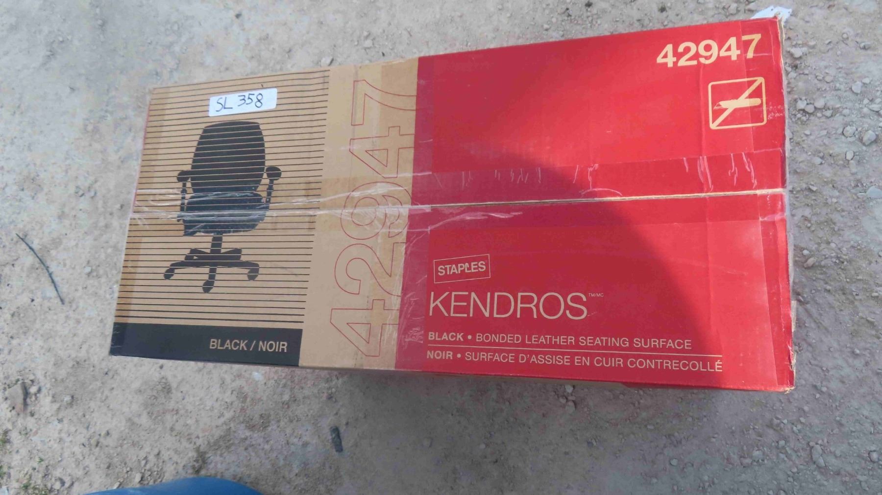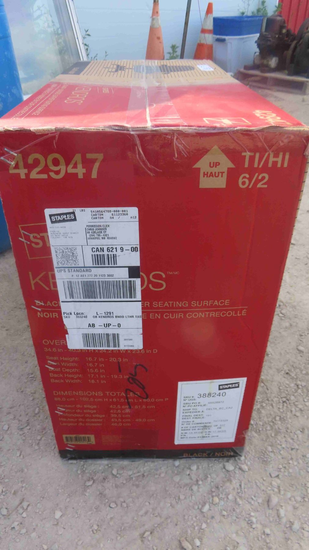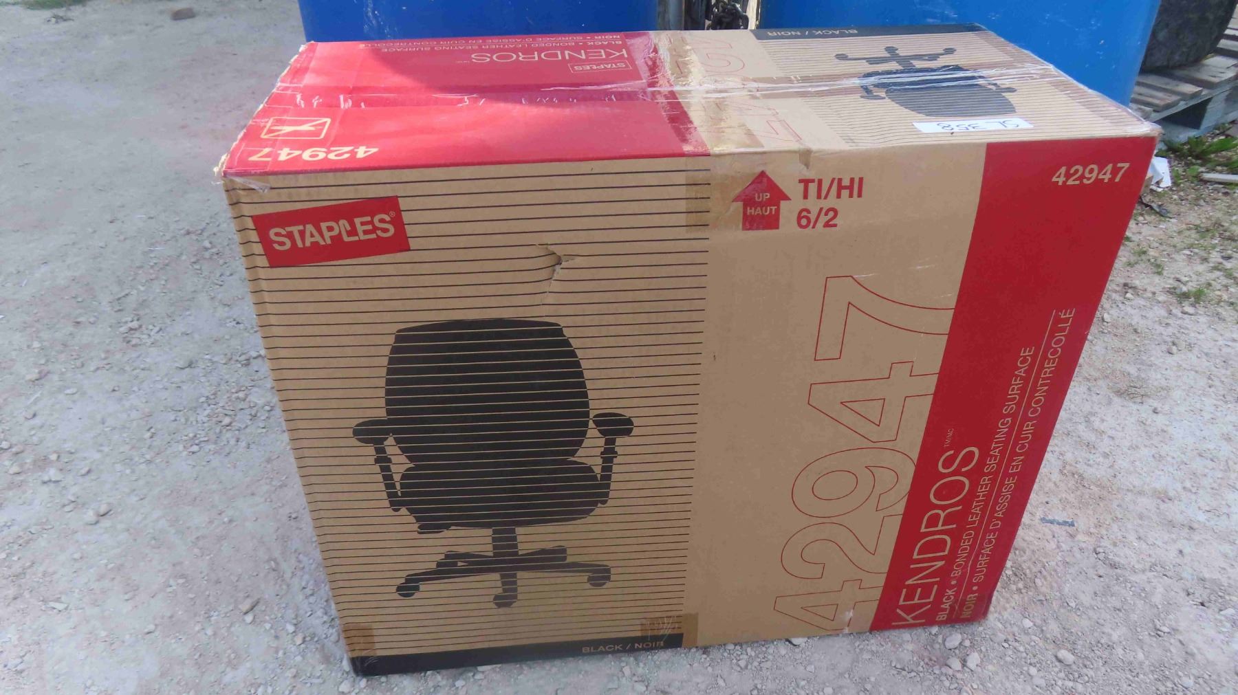 New in Box Staples 42947 Series Black Bonded Leather Office Chair with Arms, Adjustable Height & Swivel