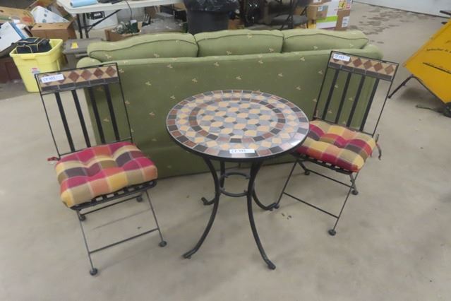 Nice Ceramic Tile Top Patio Table with 2 Matching Chairs - Table 28" Tall 23.5" Wide