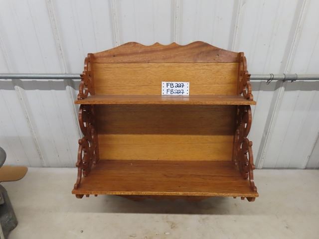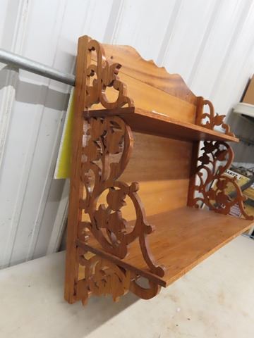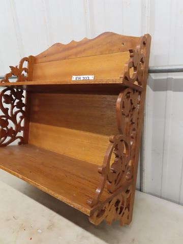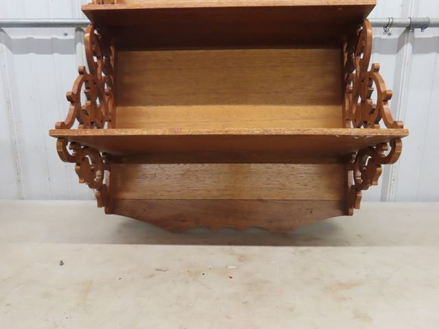 Nice Ornate Wooden Wall Hanging Shelf - Oak with Nice Scroll Works 10" x 24" x 30"