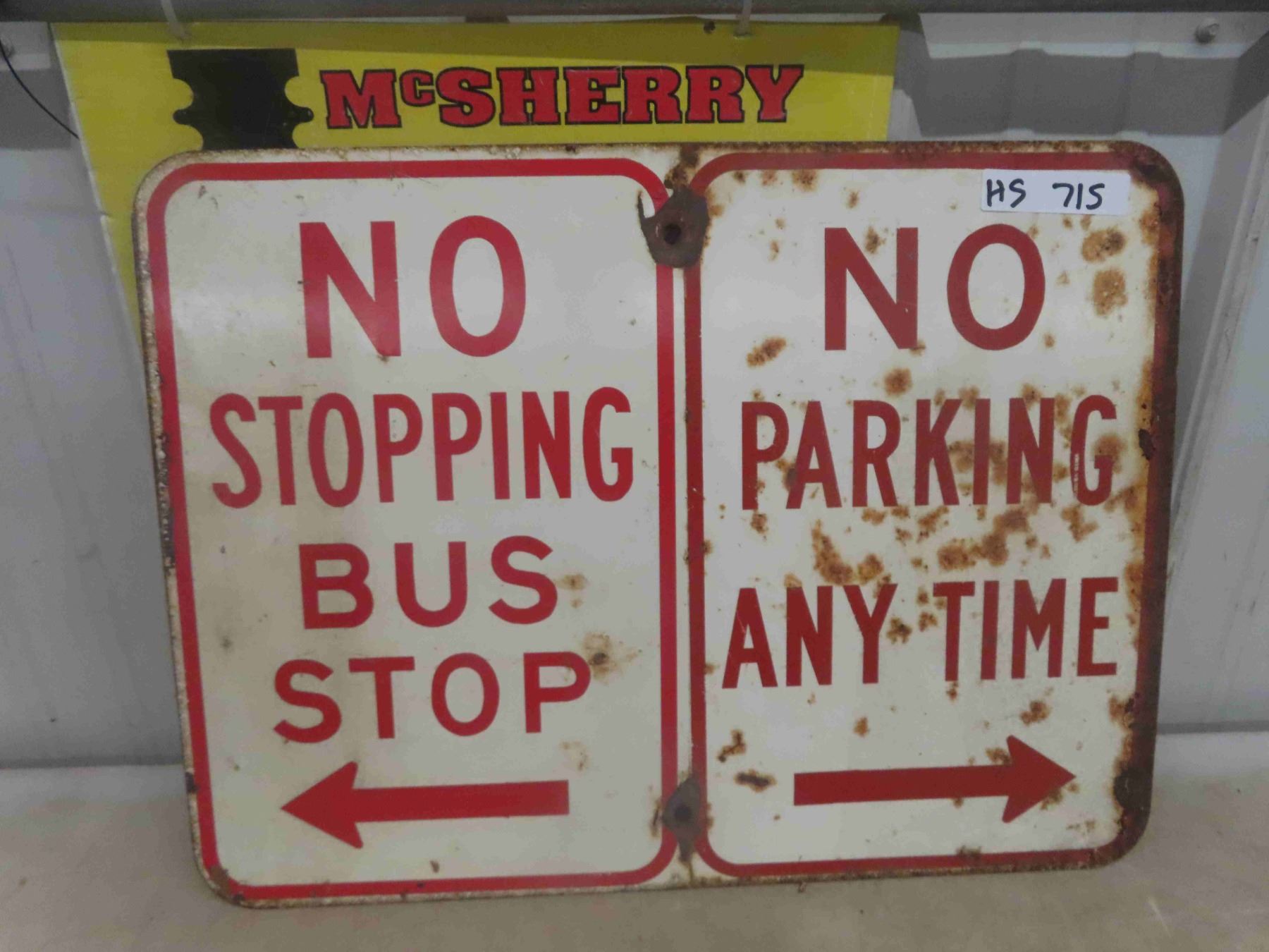 No Stopping Bus Stop / No Parking Anytime Porcelain Sign 18" x 24"