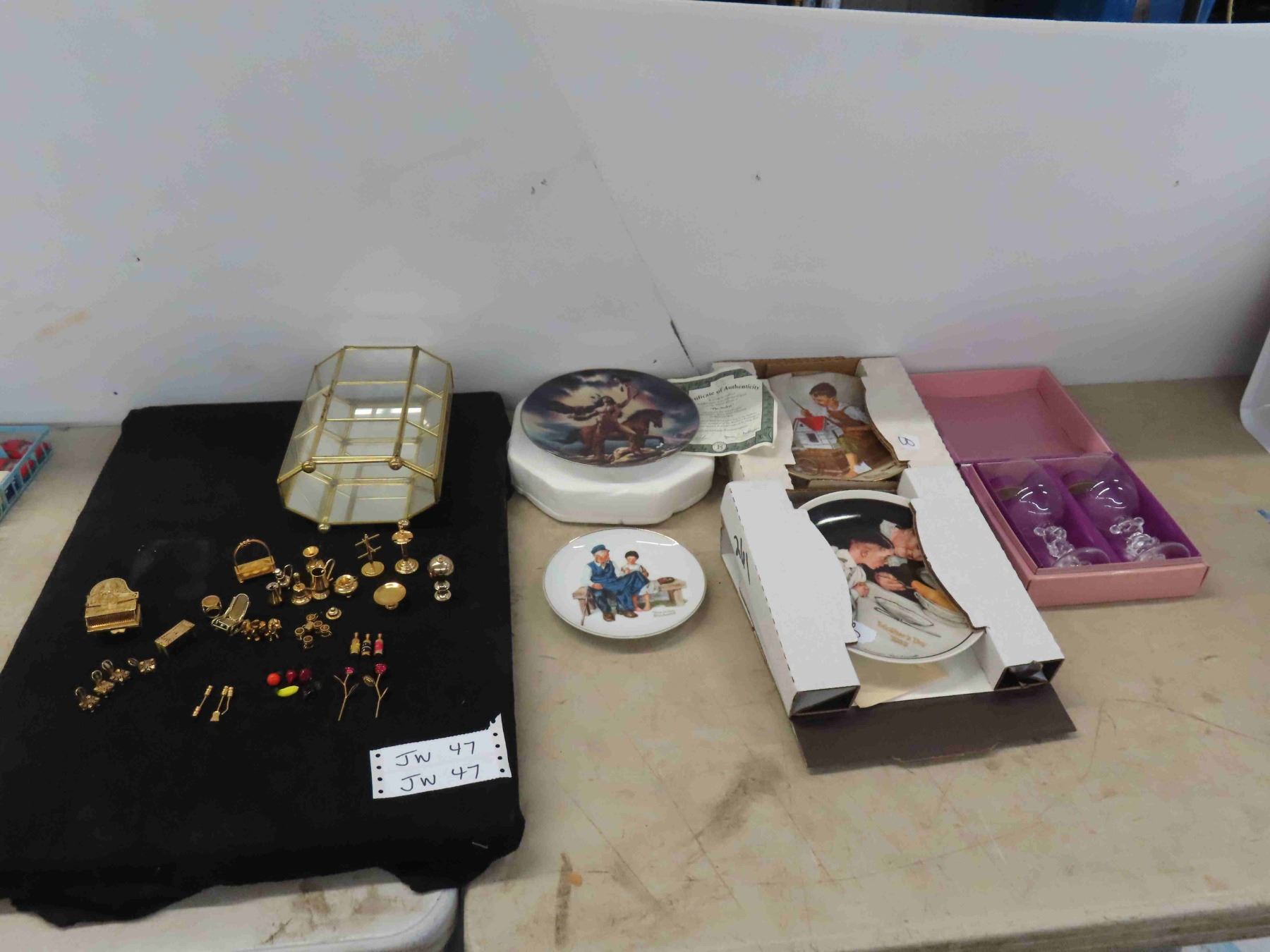 Norman Rockwell Collector Plates , Mickey Mouse Wine Glasses, Mini Collectibles with Case