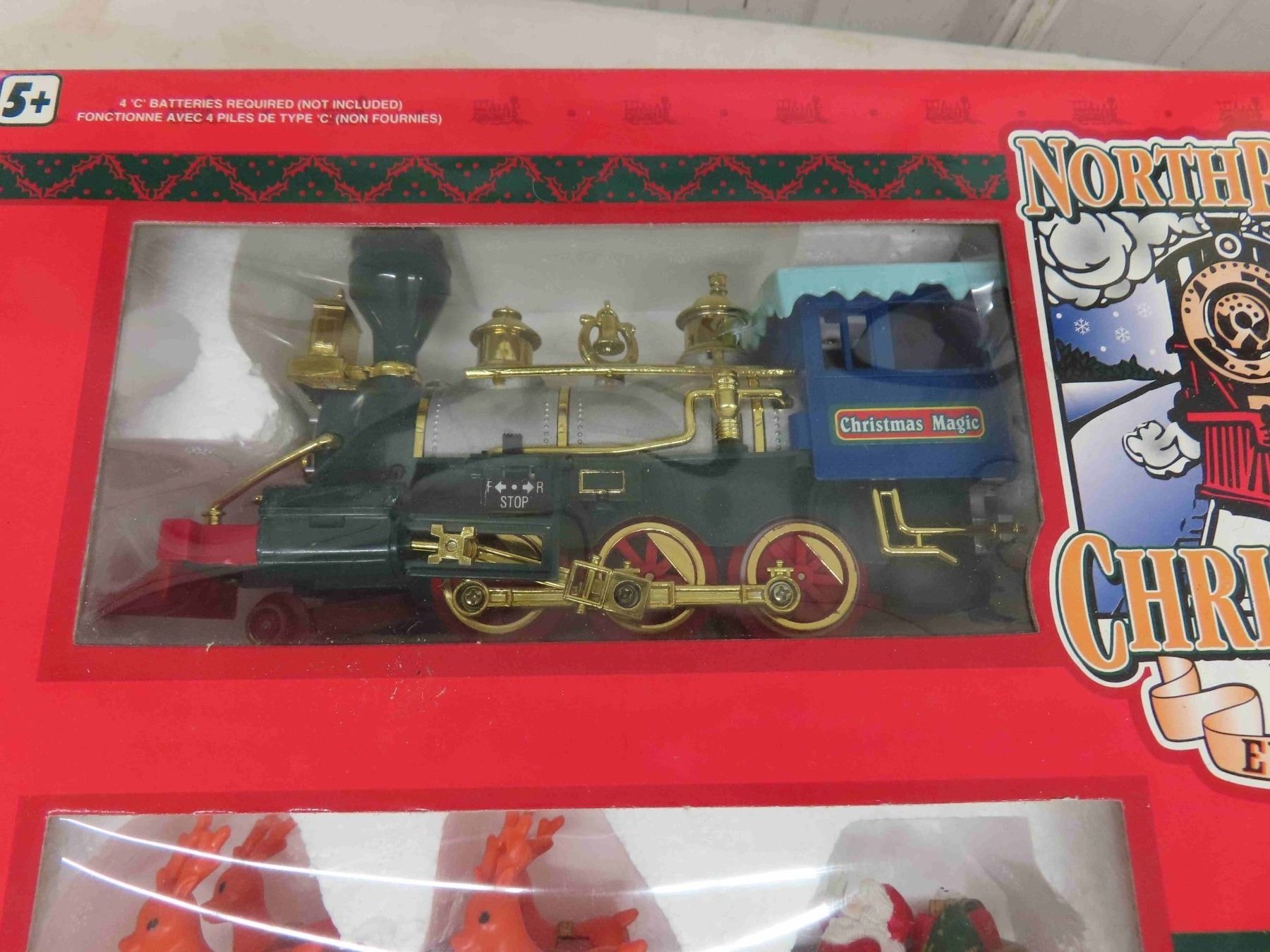North Pole Christmas Express Train Set in Box with 2 Extra Trains