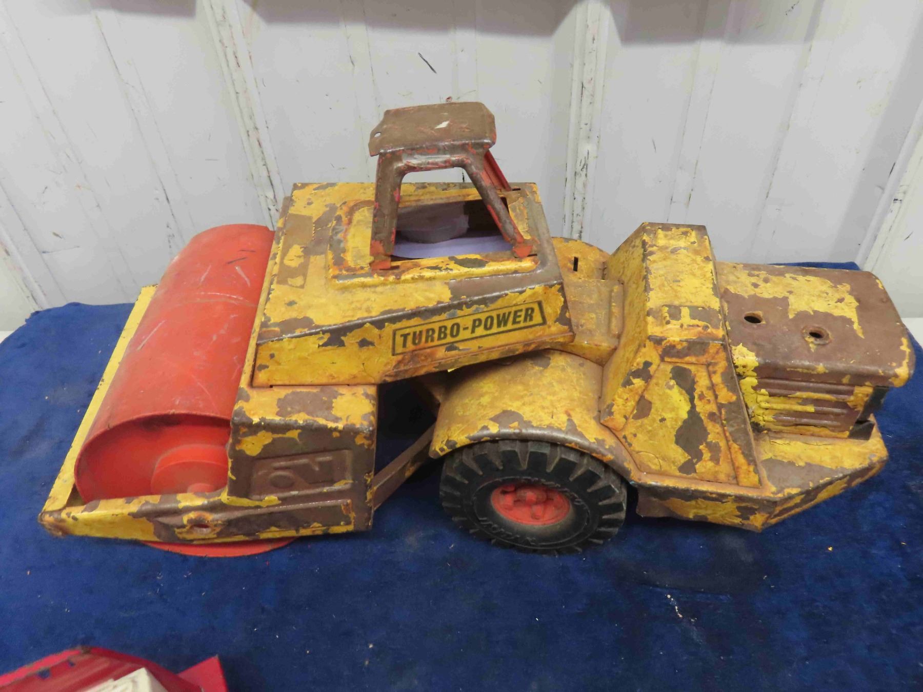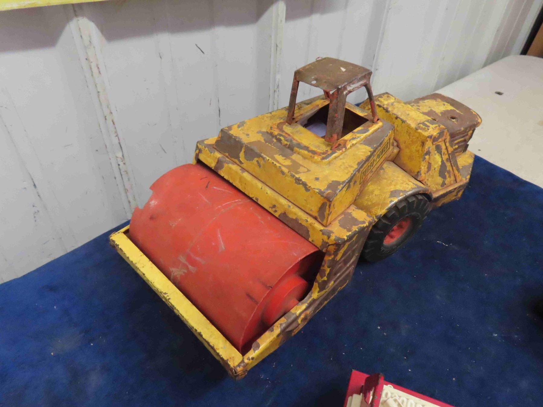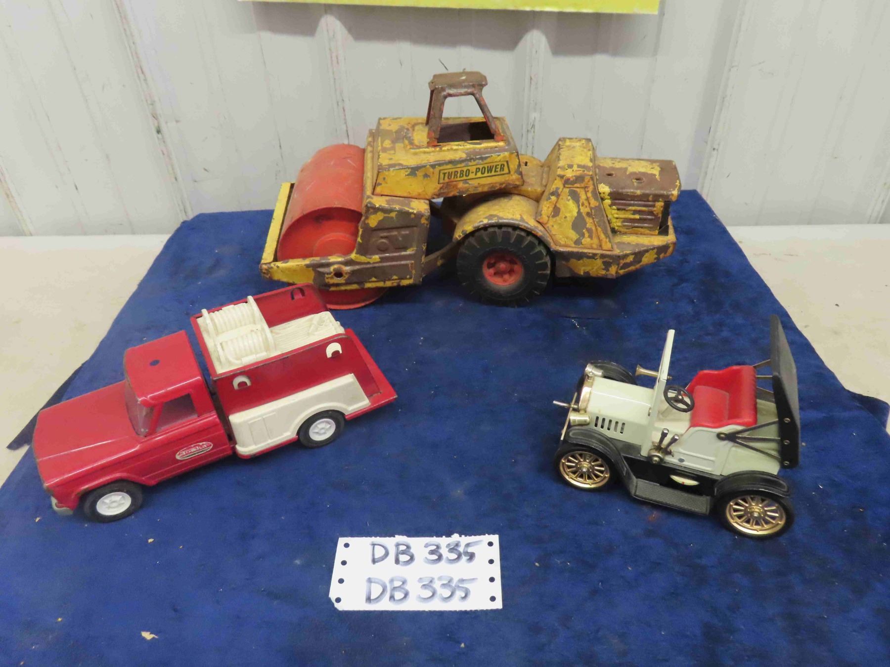 Nylint Pressed Steel Steam Roller, Tonka Fire Hose Truck, 1917 Model A Radio