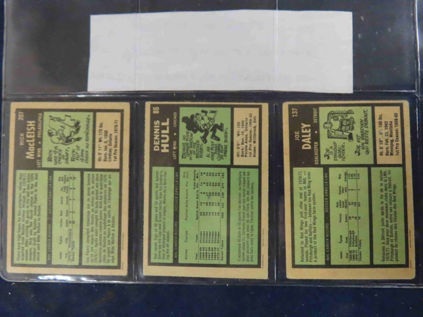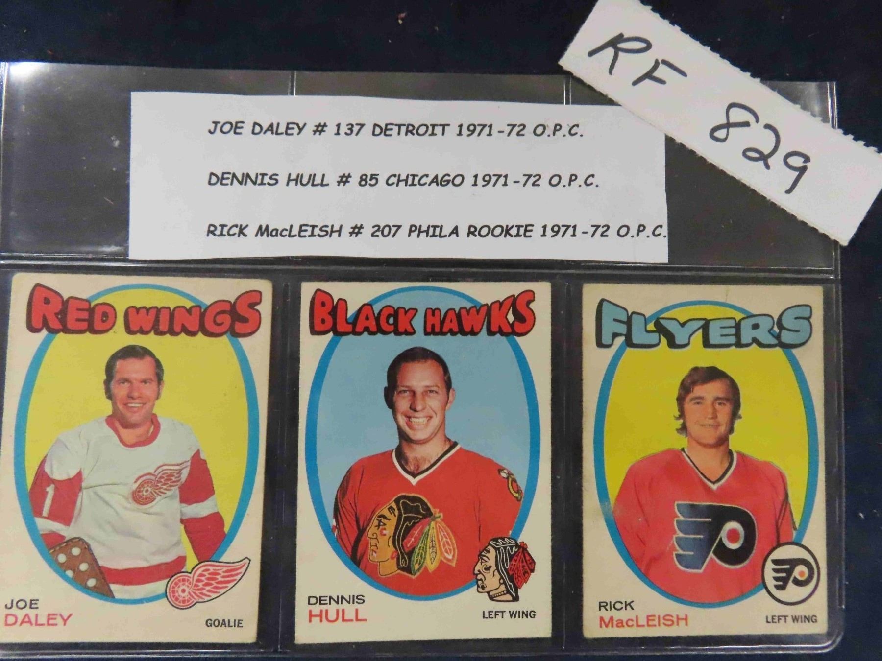O-Pee-Chee Cards ; Joe Daley #137 Detroit 1971/72 , Dennis Hull #85 Chicago 1971/72 , Rick MacLeish #207 Phila Rookie 1971/72