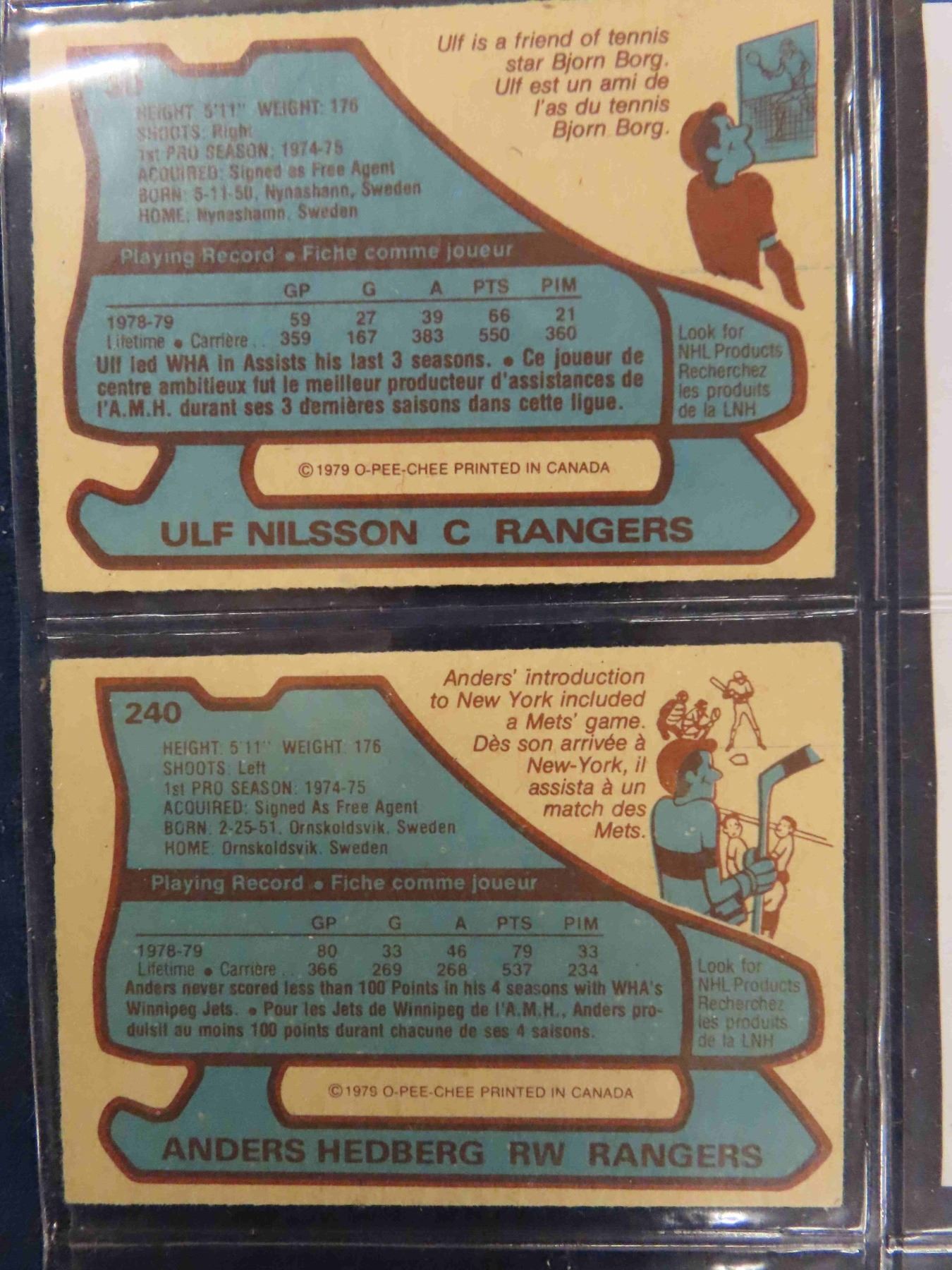 O-Pee-Chee Cards ; Ulf Nielson #30 Nyr 1979/80 + Anders Hedberg #240 Nyr 1979/80