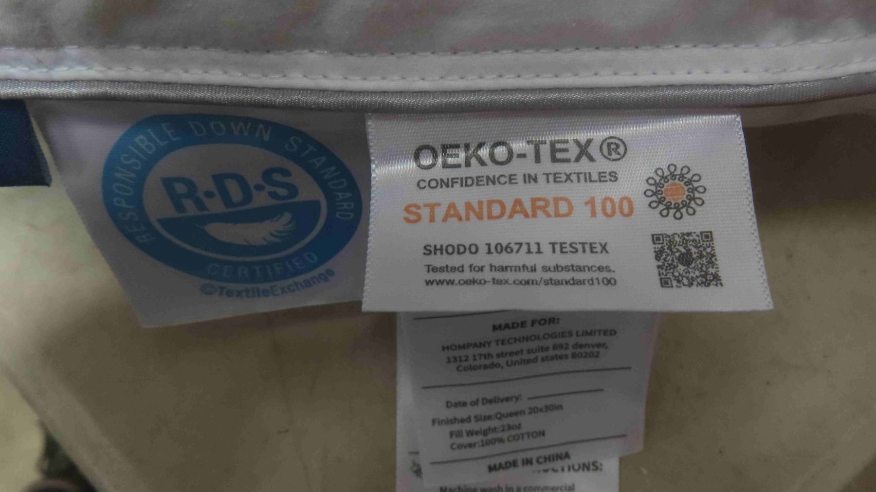 OEKO_TEX standard 100 only 1 pillow in box - New or Store Return