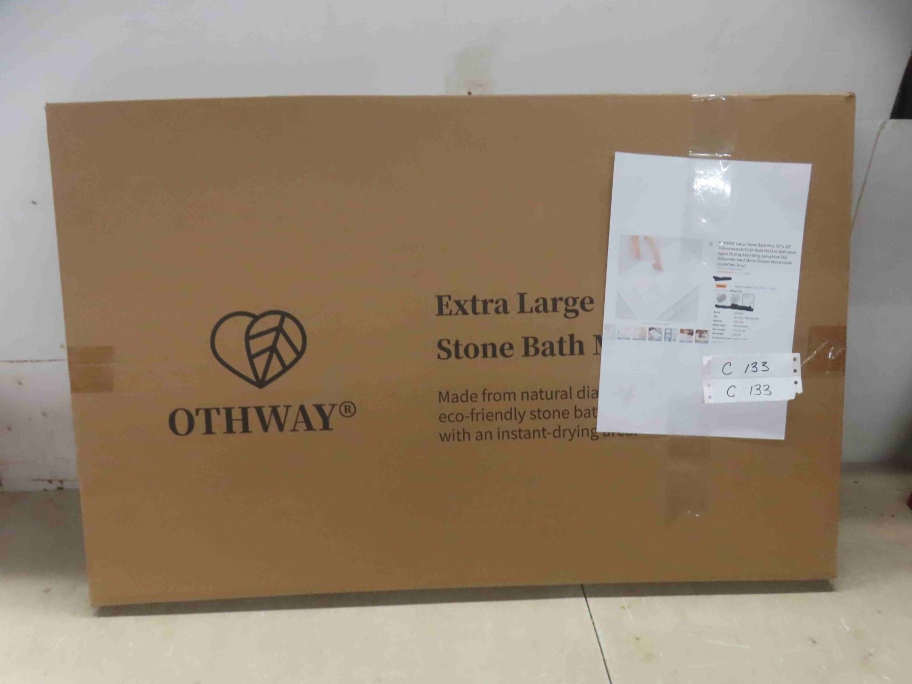 OTHWAY large stone bath mat 32" x20" diatomaceous earth bath mat for bathroom quick drying absorbing, long non-slip diatomite hard stone shower mat instant dry(white). New or store return