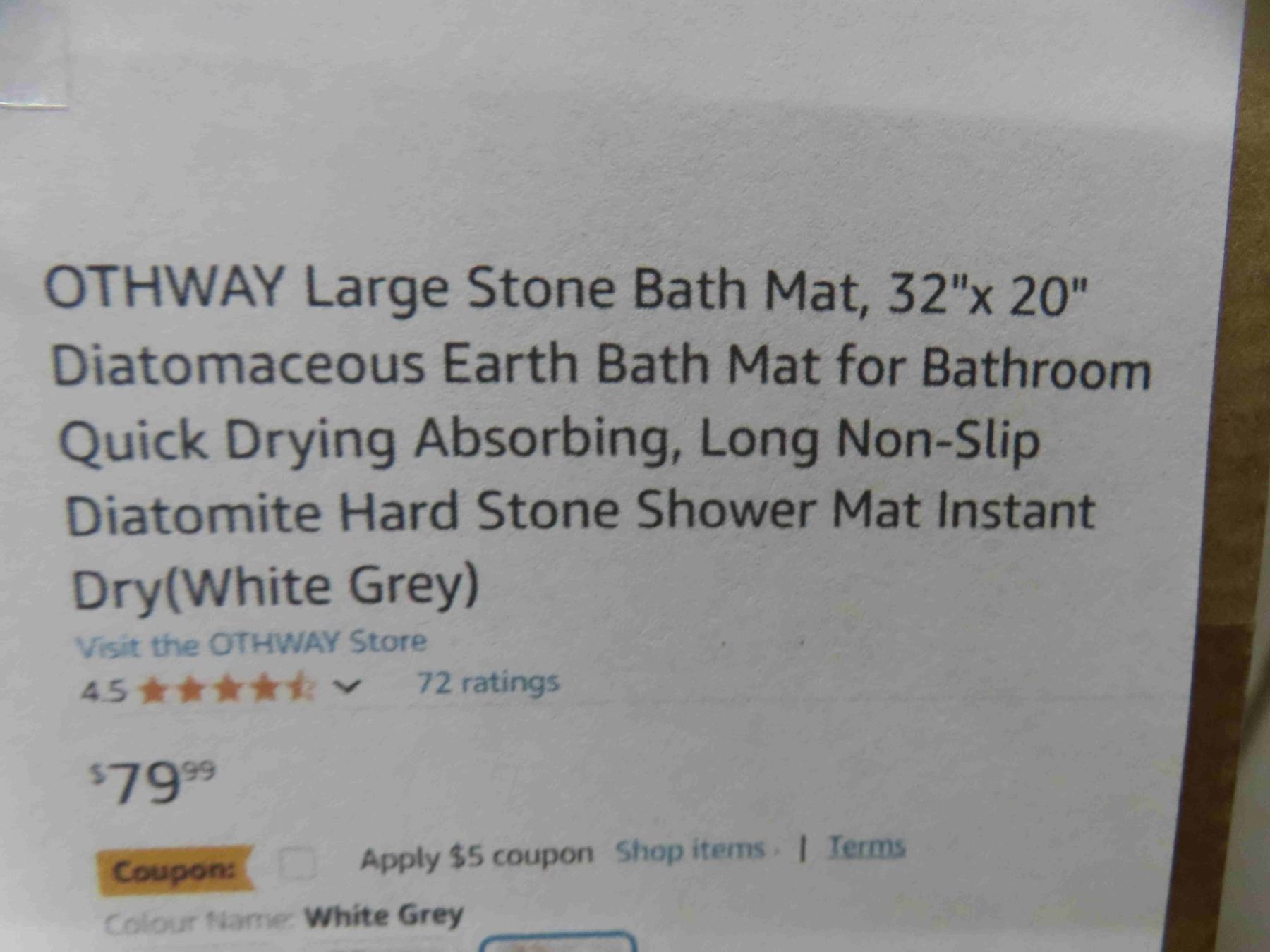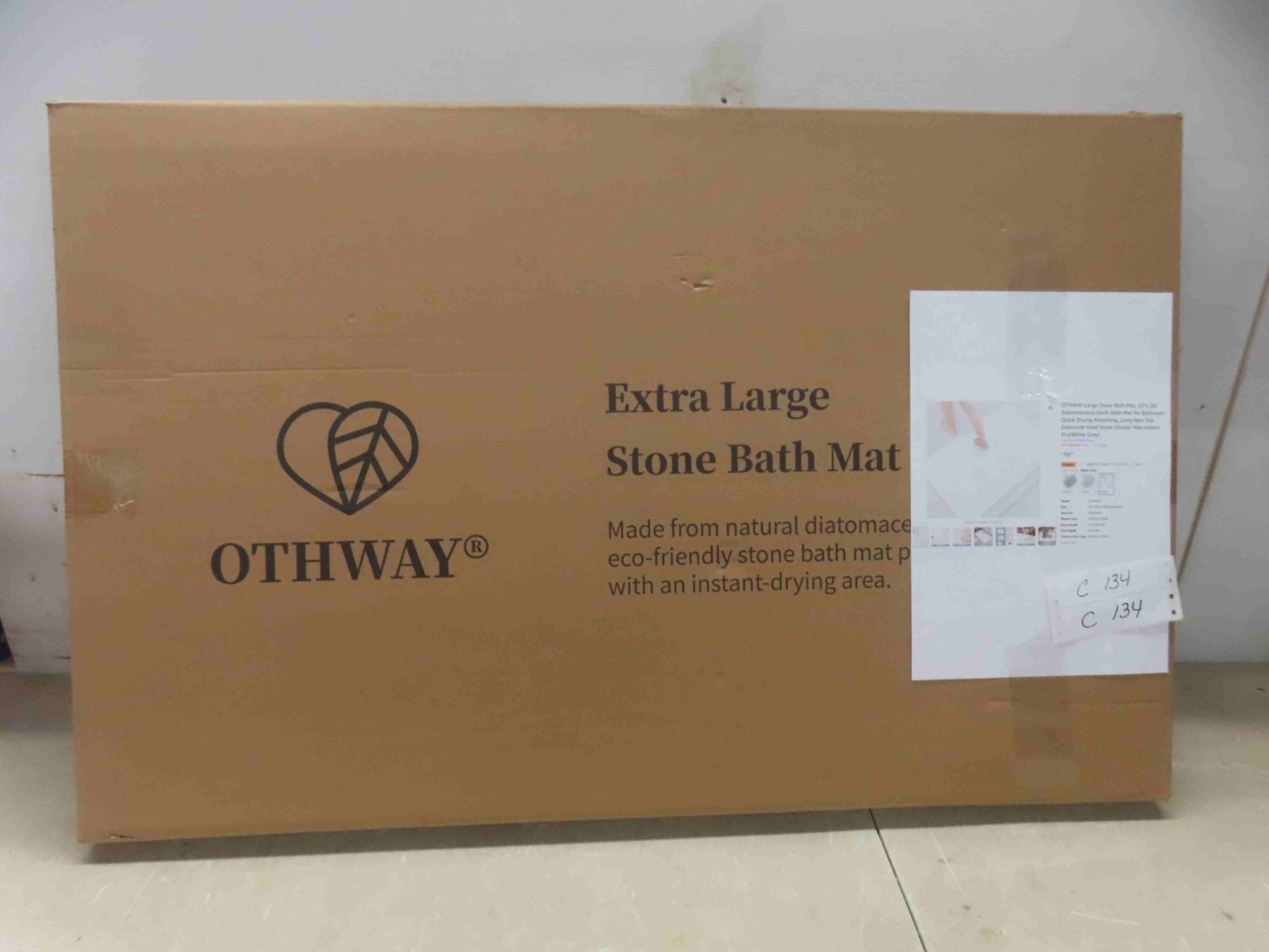 OTHWAY large stone bath mat 32" x20" diatomaceous earth bath mat for bathroom quick drying absorbing, long non-slip diatomite hard stone shower mat instant dry(white). New or store return