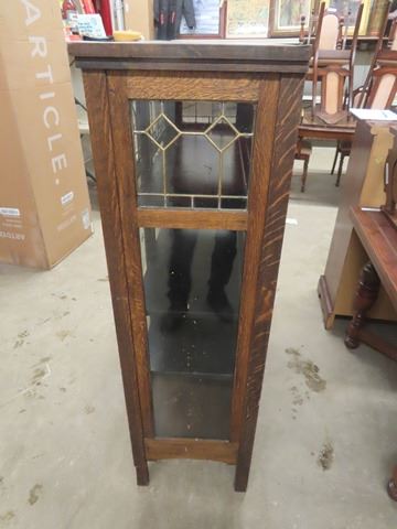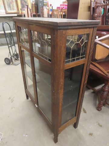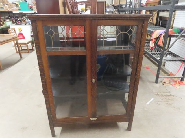 Oak 1/4 Cut 2 Door China Cabinet with Side Glass + Leaded Glass 17" x43" x 57.5"
